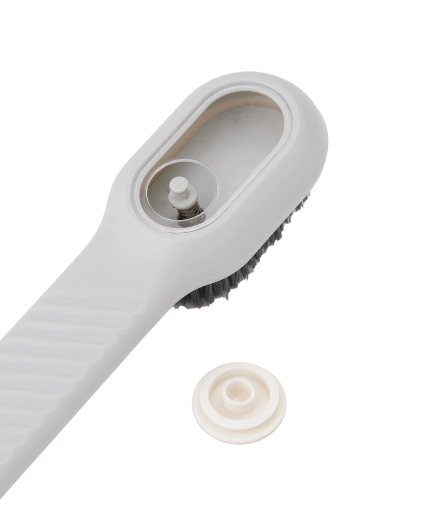 ●蓋に洗剤を入れてプッシュするとブラシの隙間から洗剤が出てきます。