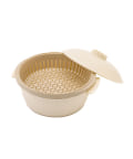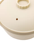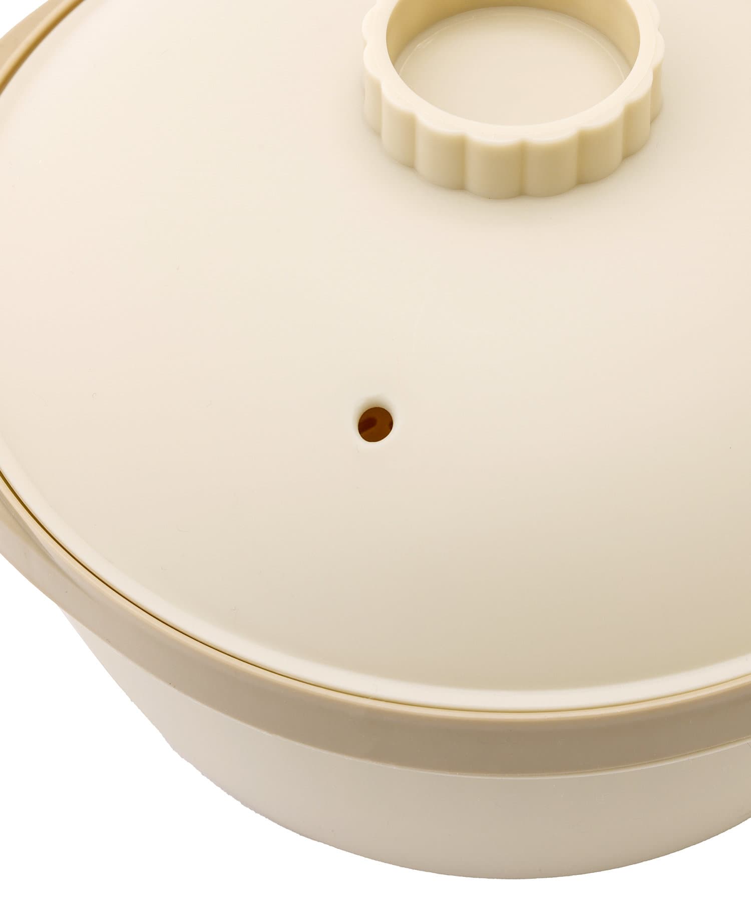 ●加熱調理後は本体・ザル・フタ共に大変熱くなっています。また、フタの内側に付着した湯滴が垂れ落ちることもあります。特にレンジからの取り出しの際には、やけどに十分ご注意ください。