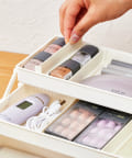 ●取り外し可能な仕切りが4枚付いているので、収納するものに合わせて幅を調節できます。
