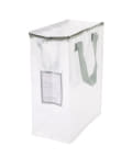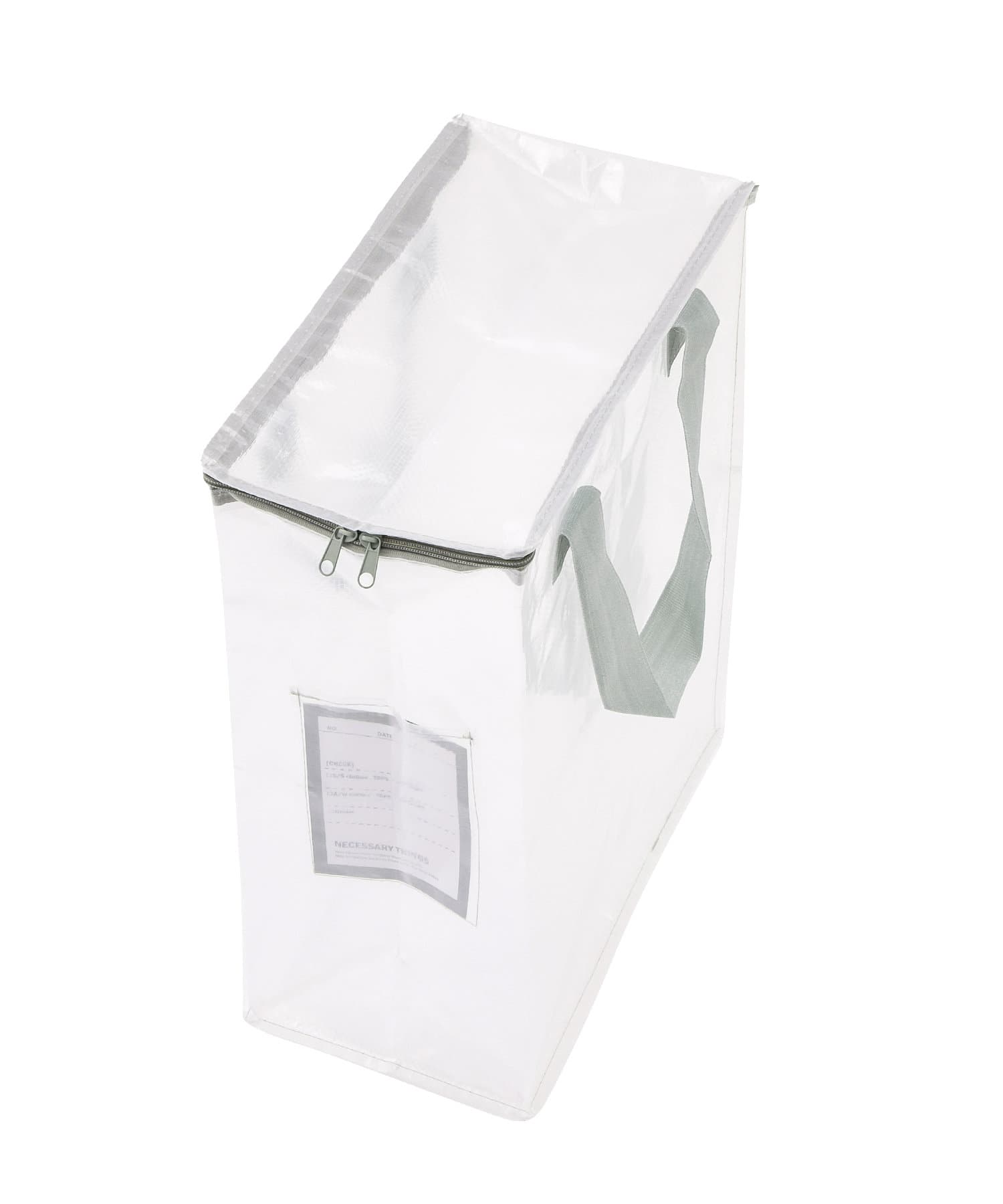 ●スリムなのでちょこっとした隙間にも置きやすい縦型タイプのクリアボックスバッグ。