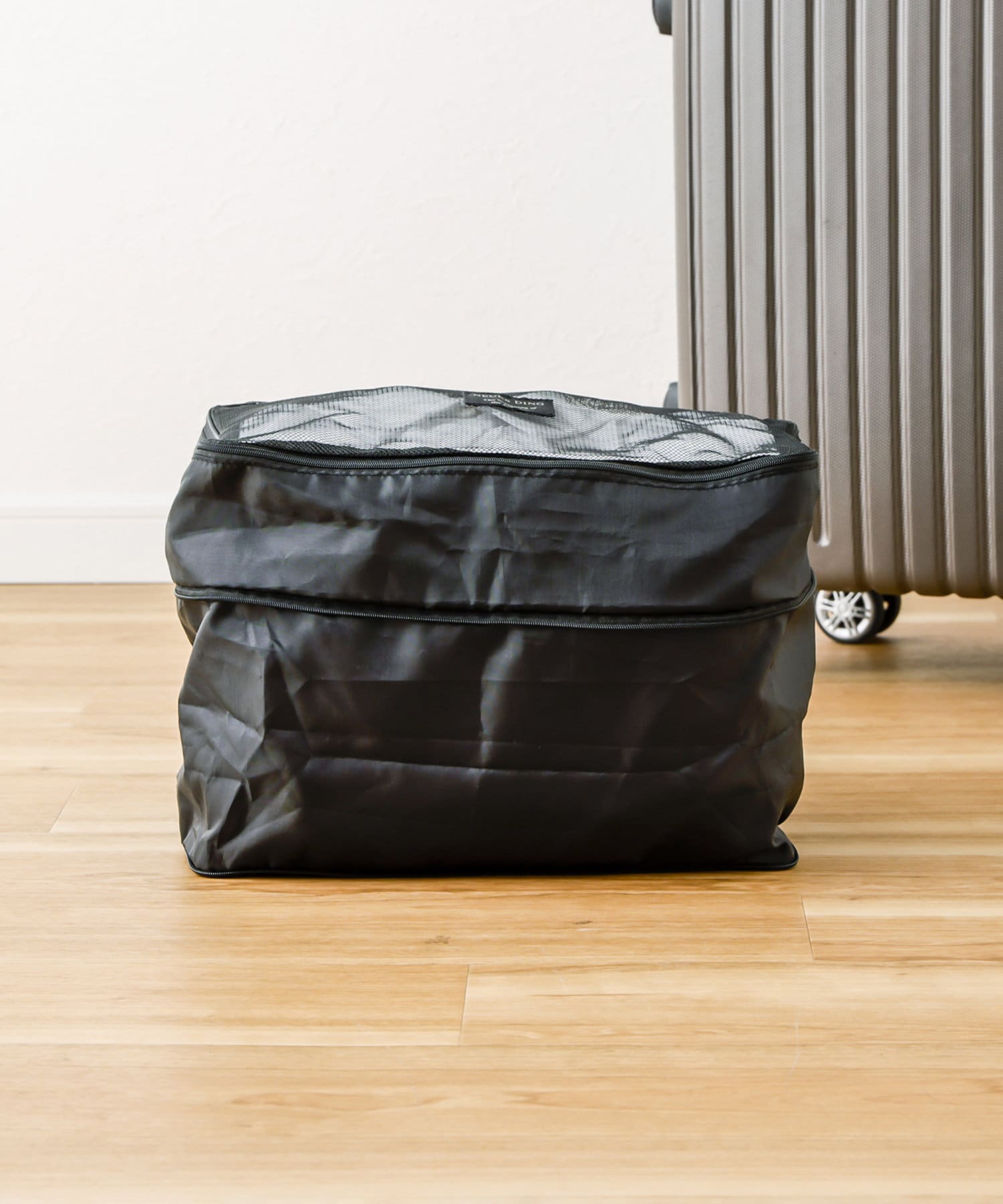 旅行時のパッキングに役立つ衣類圧縮バッグ。