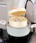 2.調理中にせいろがぐらつくと大変危険です。また、鍋にせいろを直接のせて使用したり、大きな炎で加熱するとせいろが焦げることがあります。せいろ用蒸し板(別売り)をご使用いただくことをお勧めします。