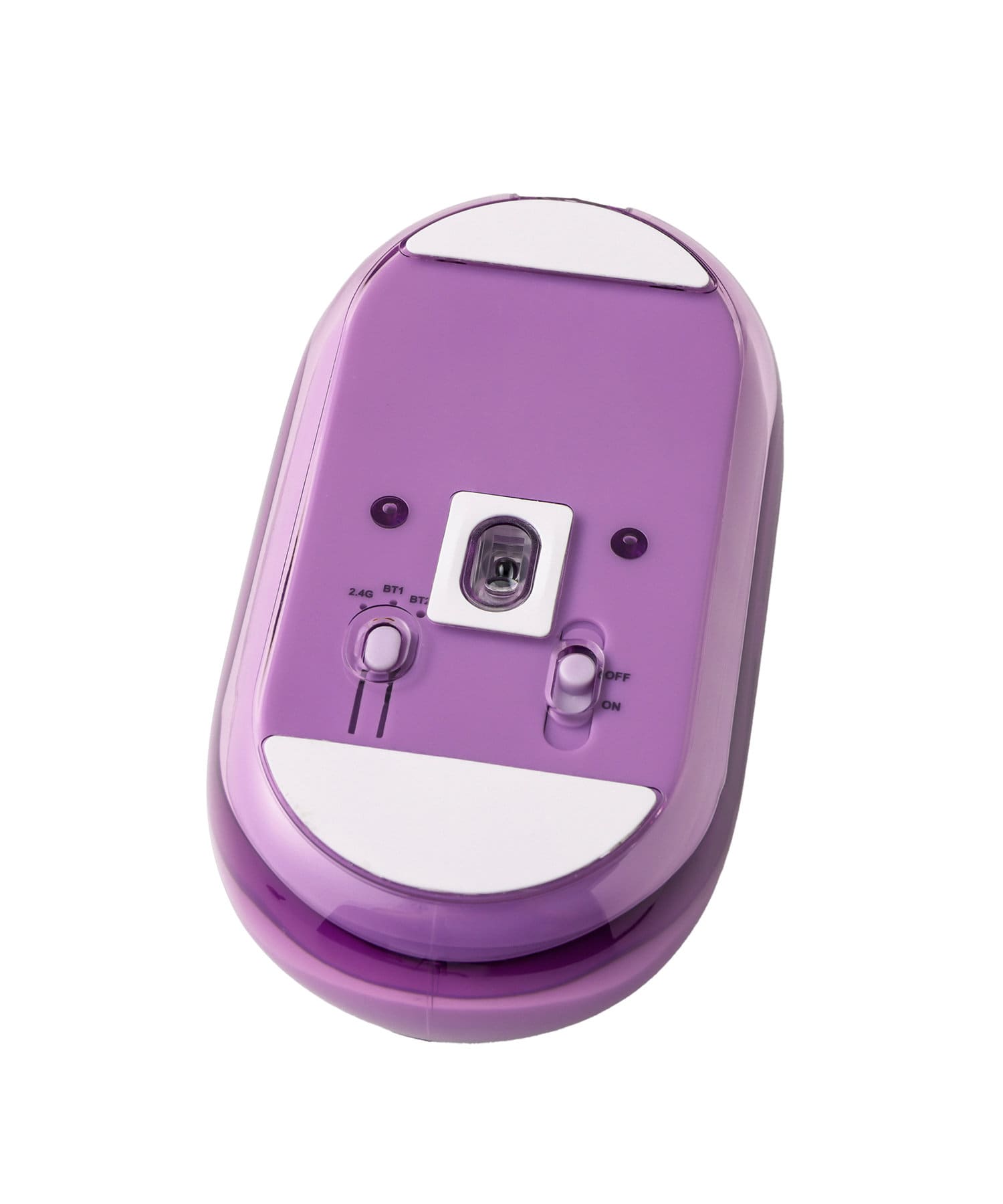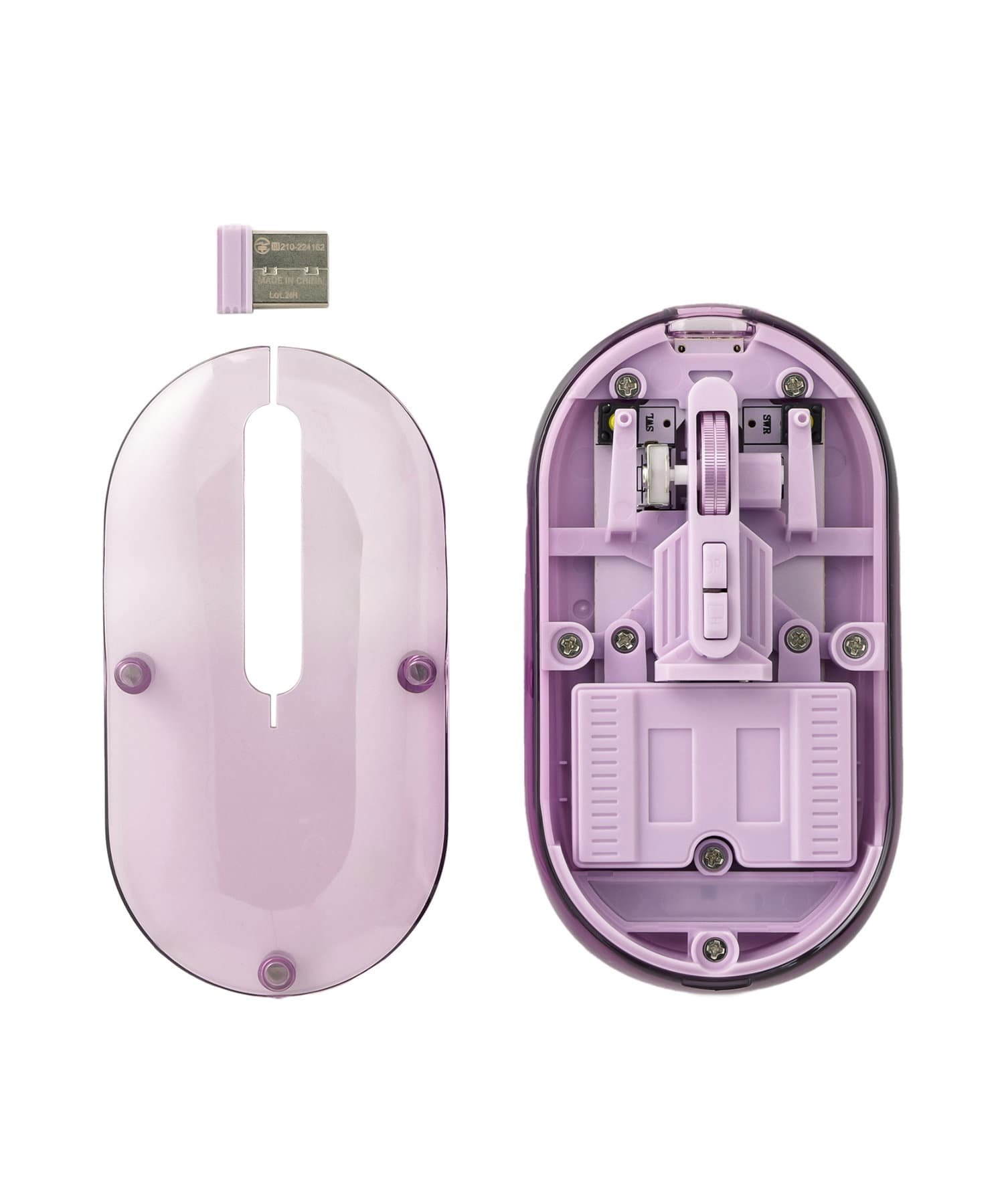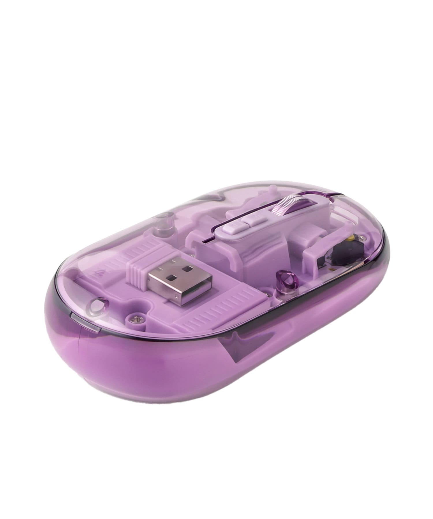 購入場所:店舗クリアで中が黒が欲しかったが、在庫無い様なのでパープルを購入。使用感は、クリック音、ホイール音とも小さく気に入りました。Bluetoothも使い分けできる点も良い。これを購入後に透明クリアーを購入したが、そちらのレビューでも書いたが音や光漏れがあり、比較するなら、こちらを購入が正解。