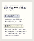 ●音楽プレーヤーモードでは、保存した楽曲を再生できます。また、Bluetoothモードでは、Bluetooth対応機器と接続して音楽を楽しむことができます。