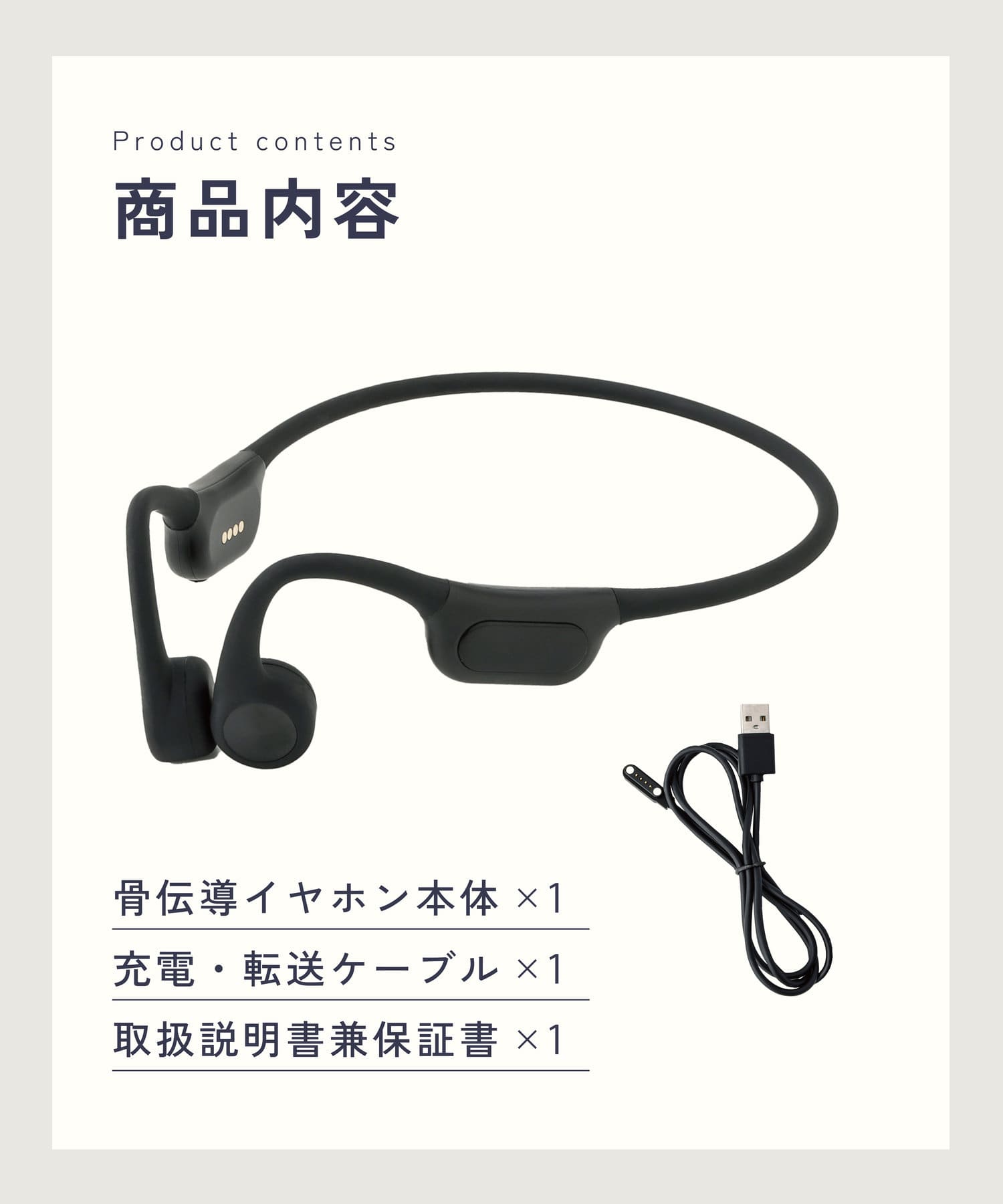 内容物:本体×1、充電・転送ケーブル×1、取扱説明書兼保証書×1