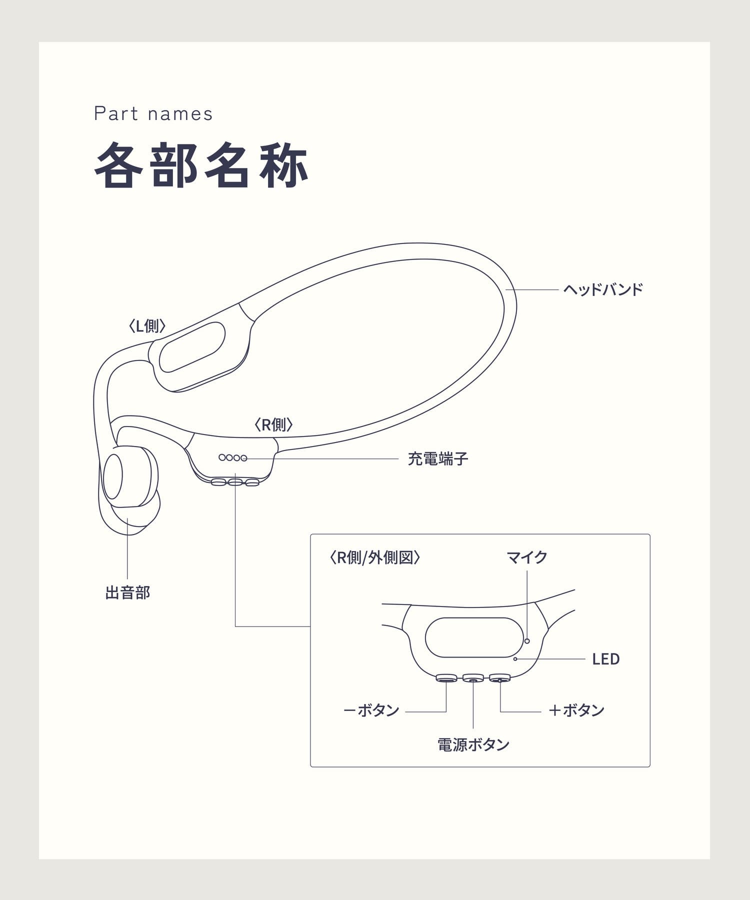 ●骨伝導方式です。特性上、音量によっては周囲に音が聞こえます。また、音の伝わり方には個人差があります。