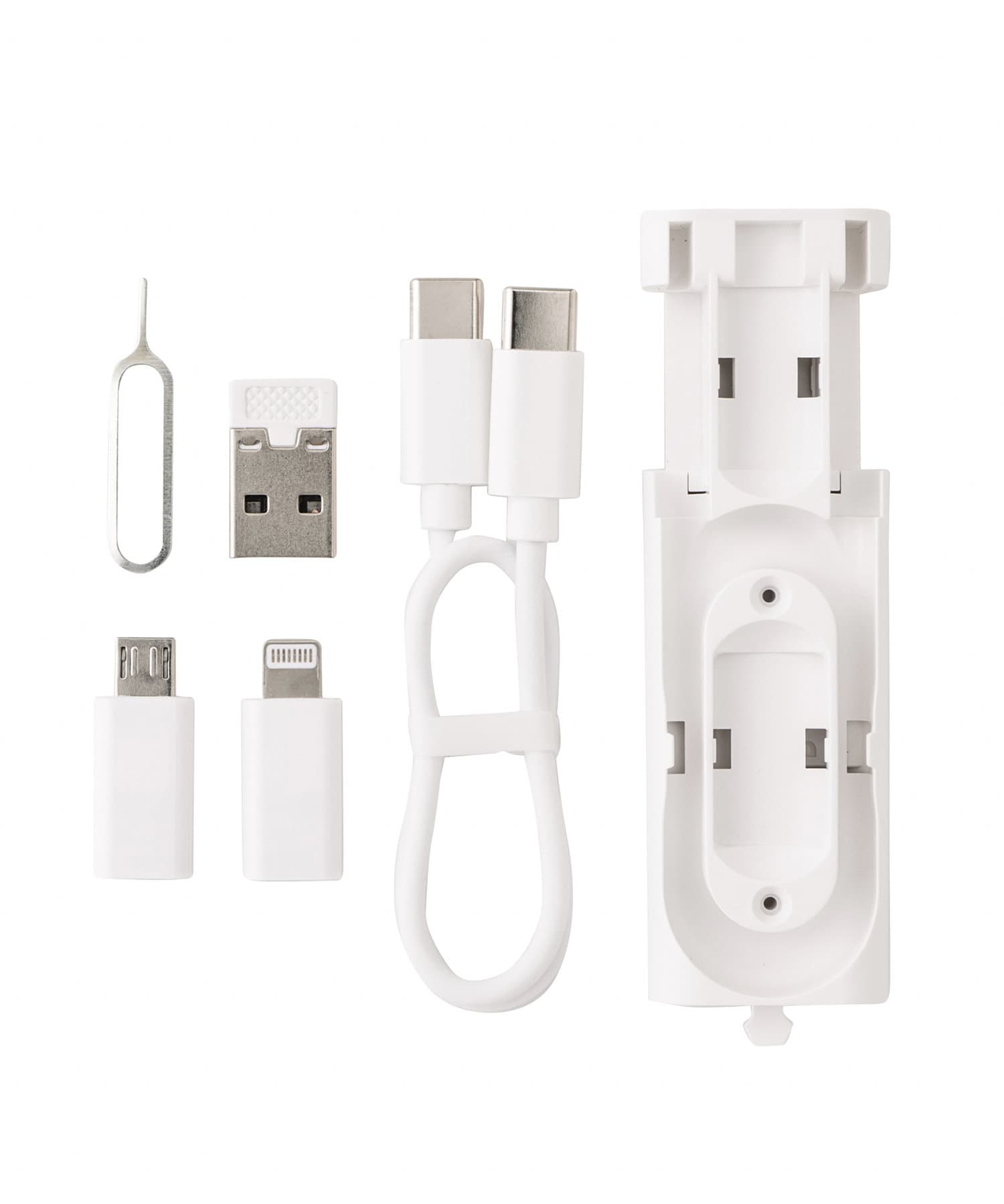 内容物:本体(Type-C to Cケーブル/USB-A、ライトニング、Micro-Bコネクタ各1個内蔵)×1、取扱説明書×1