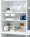 奥行きのある食器棚にスライドして直ぐに手に取れるのはよいです。