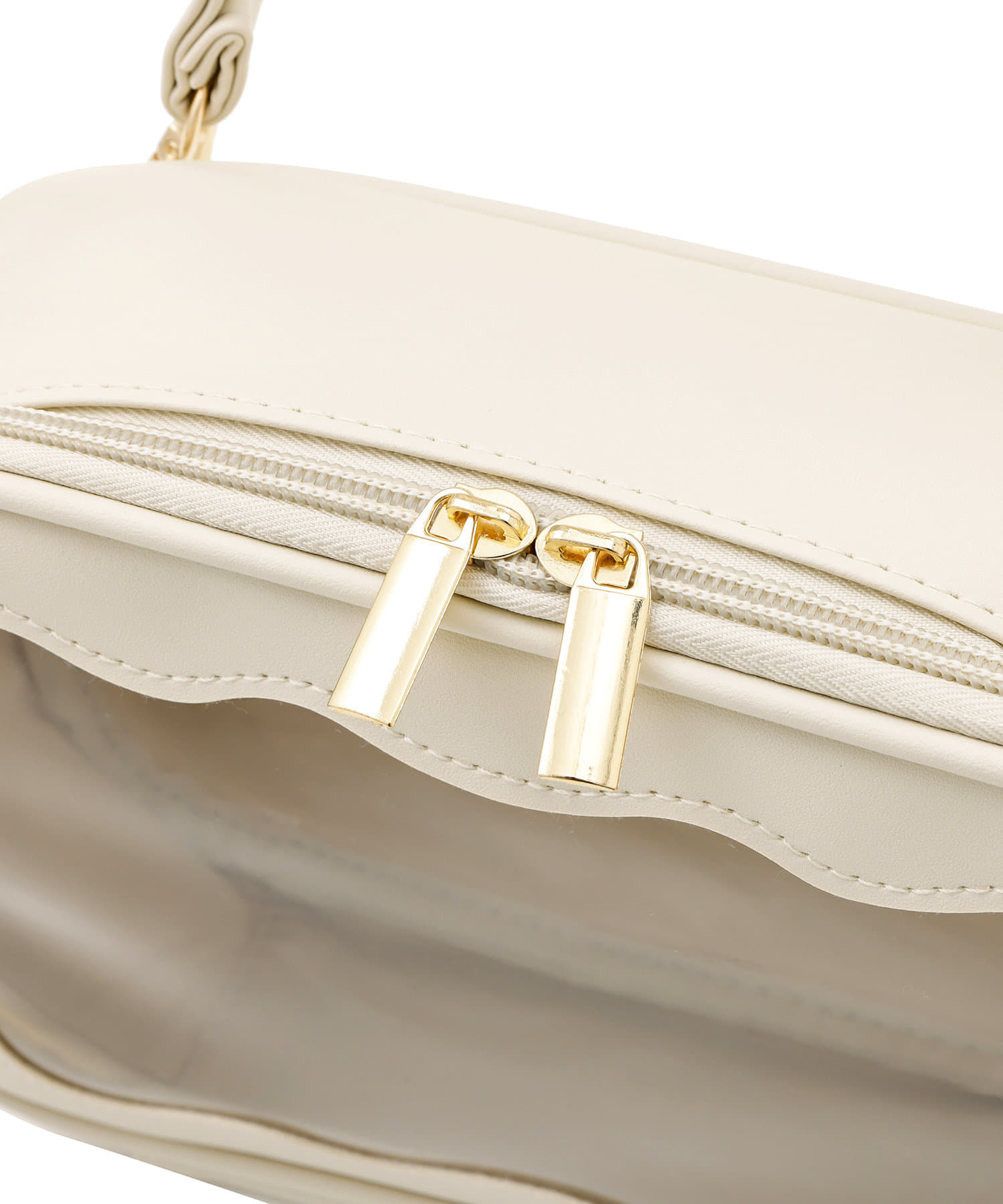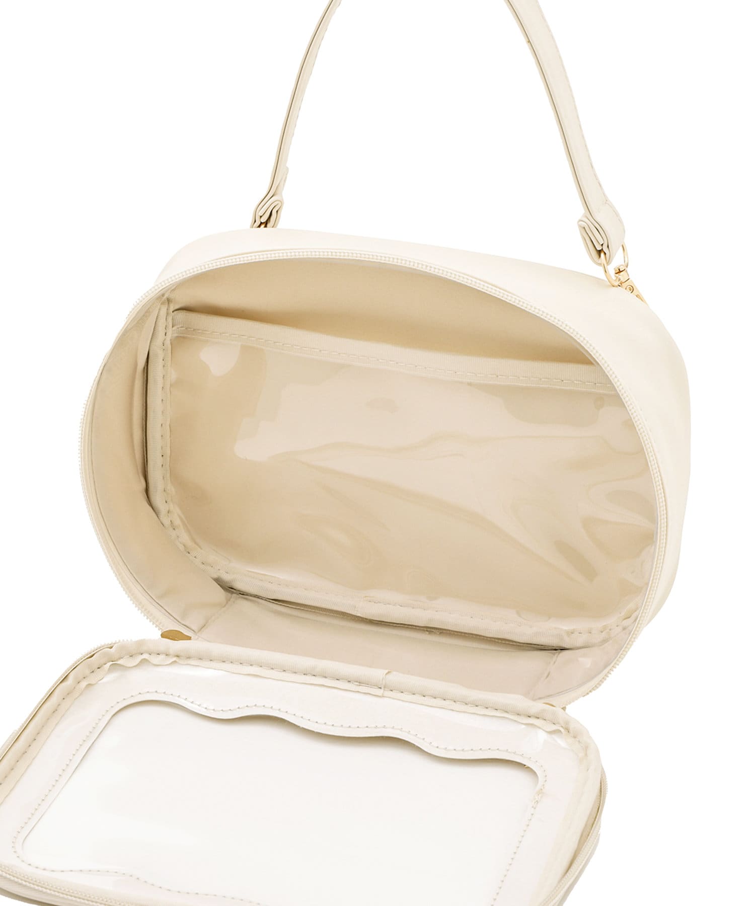 購入場所:パルクローゼット持ち歩く用ではなく、家に飾る用に購入しました。アイボリーの色合いと高見えするゴールドのファスナーでとてもかわいいです。もう1つ欲しいのですがすぐに売り切れてしまいまた是非再販してほしいです。