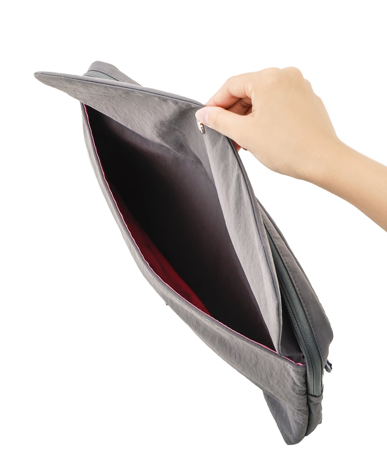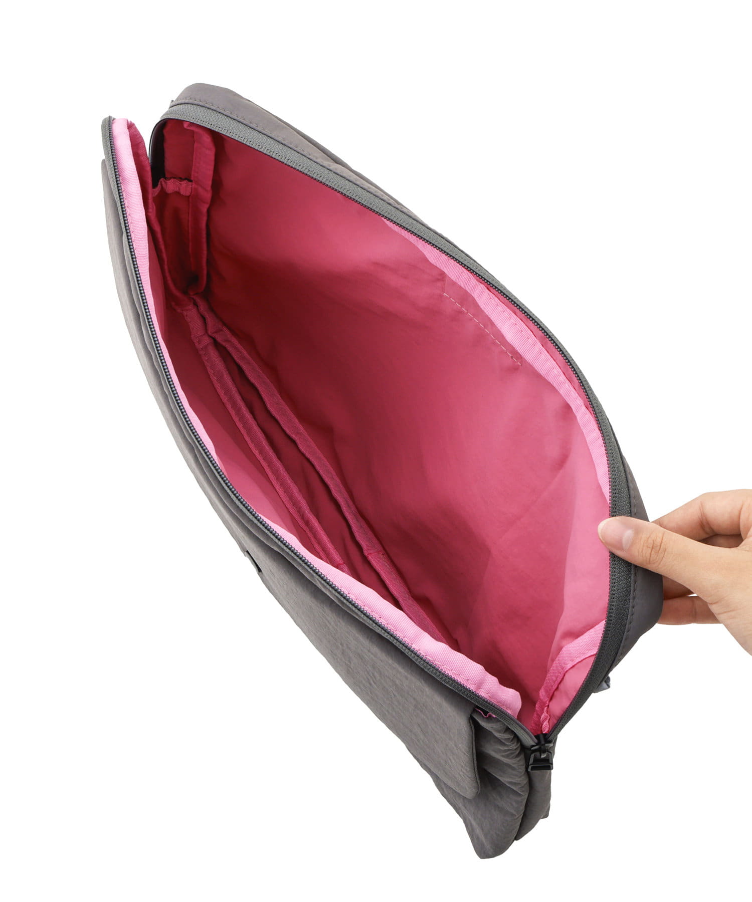 ●13.3インチや14インチのPCも収納できる大きさで、PCケースとしても使用できます。ビジネスシーンにもおすすめです。
