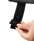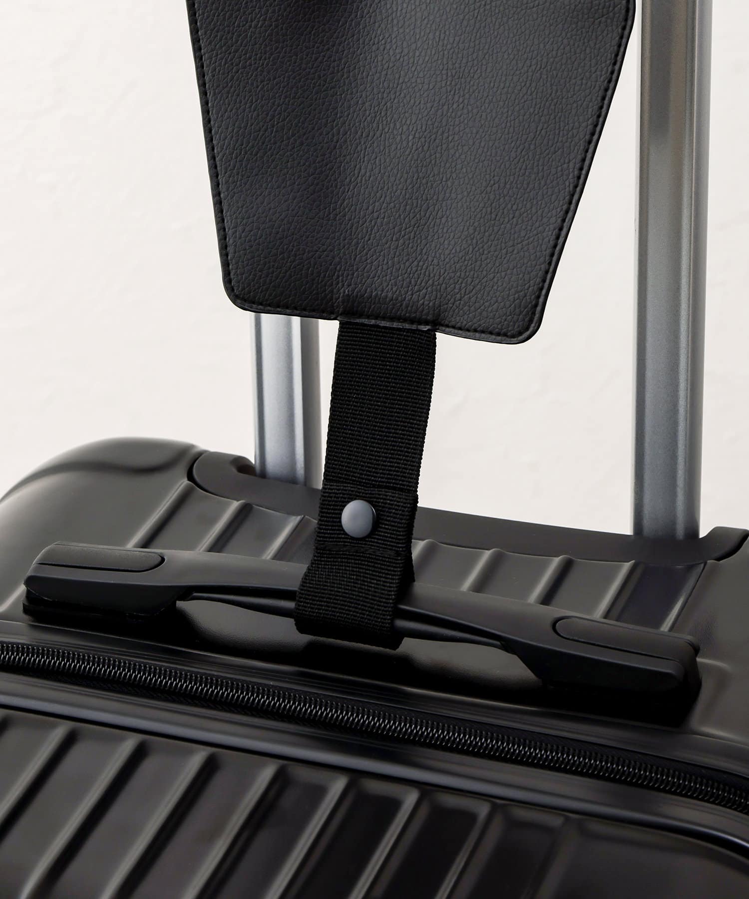 1.キャリーケースの上部ハンドルにテープを通し、ボタンを留めます。
