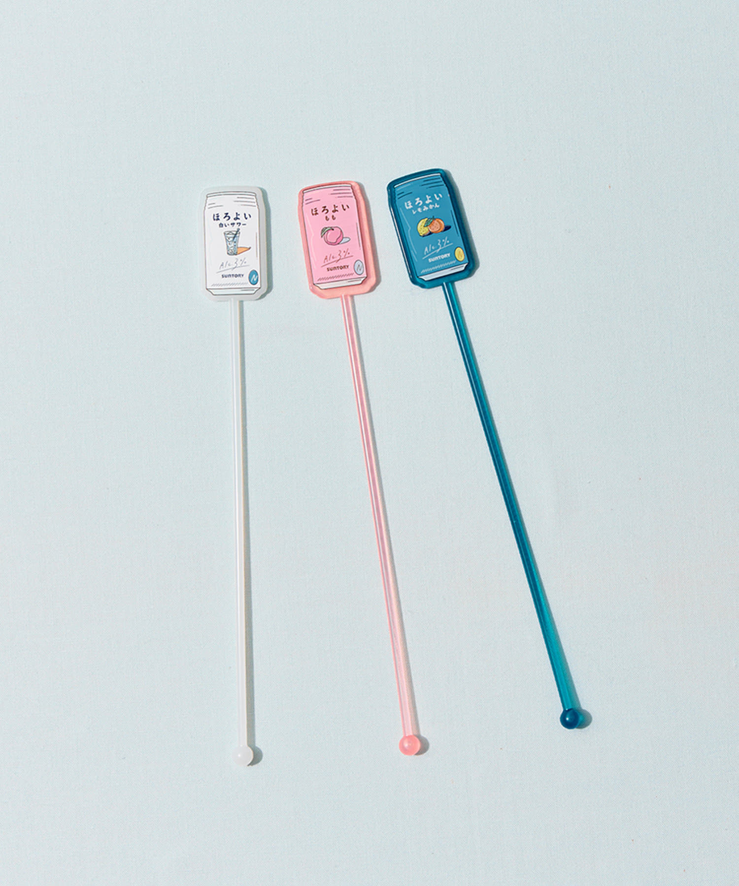 ●ほろよいの大人気フレーバー「白いサワー」「もも」「レモみかん」のマドラーです。
