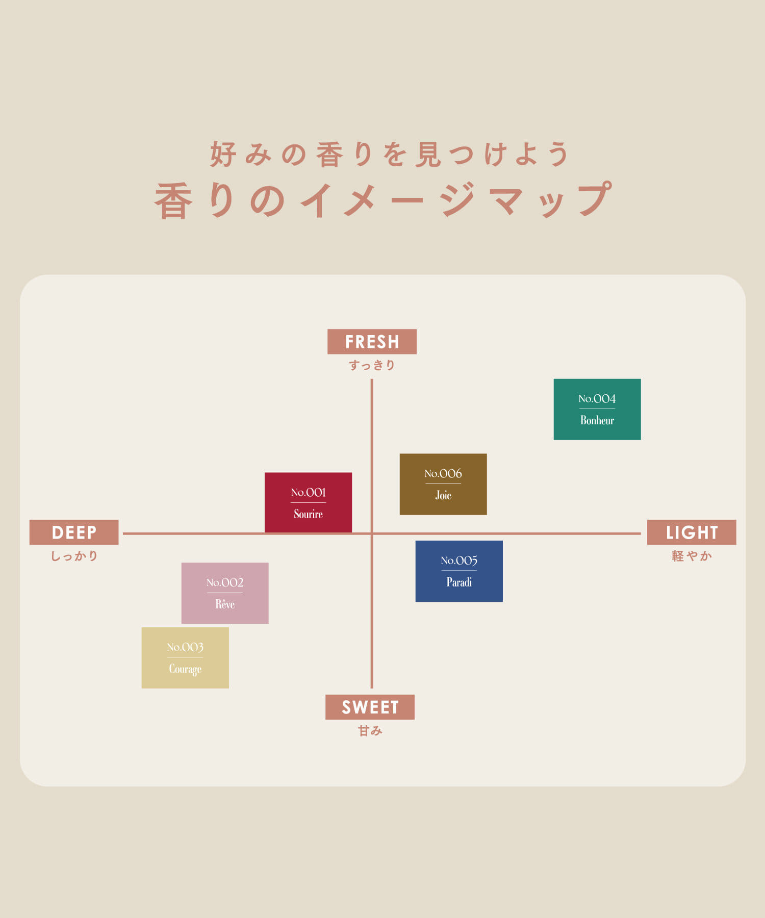 ●香りの感じ方には個人差があります。使用中に具合が悪くなる等の症状があった場合には、すぐ使用をおやめください。