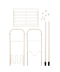 セット内容:左側フレーム(ボトルラック付き)×1、右側フレーム(鍋フタラック付き)×1、水切りラック×1、伸縮ポール×2、吸盤付きねじ×4、ねじ×4