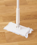 ●シートをワンタッチで着脱でき、手が汚れないフローリングワイパー。