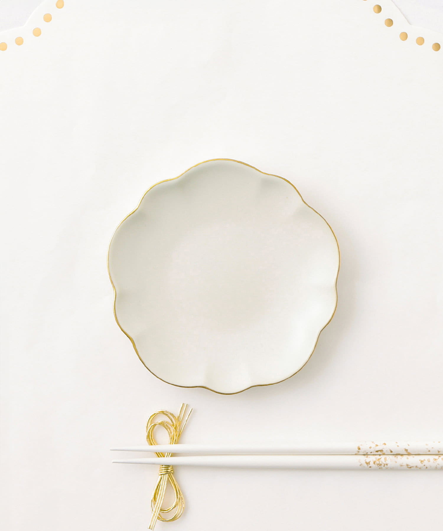 ●ホワイト×ゴールドの上品な配色で、お正月の食卓が特別感のある雰囲気に仕上がります。