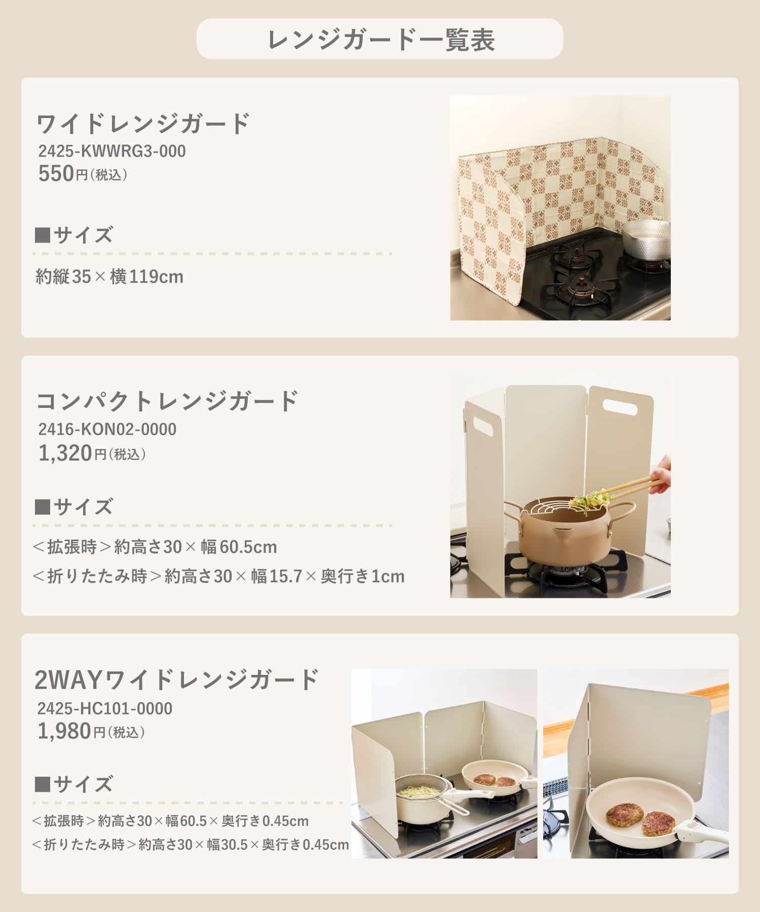 購入場所:店舗小さな賃貸のキッチンにピッタリで毎年御社のレンジガードを購入しています。少し折りたたんで、サイズ合わせは必要ですが、気になりません。今年はどんなデザインかな、楽しみにしています。大満足!