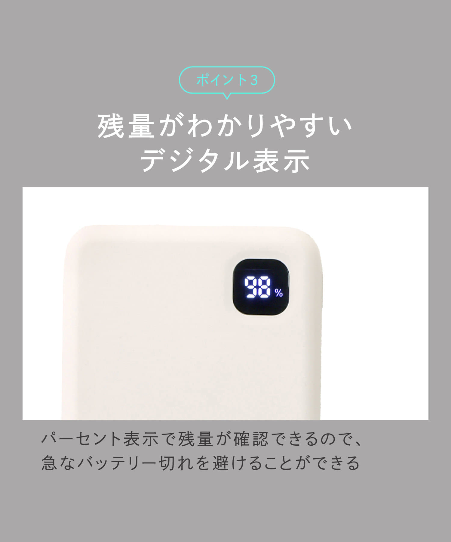 ●持ち運びやすいコンパクトな手のひらサイズのモバイルバッテリー。
