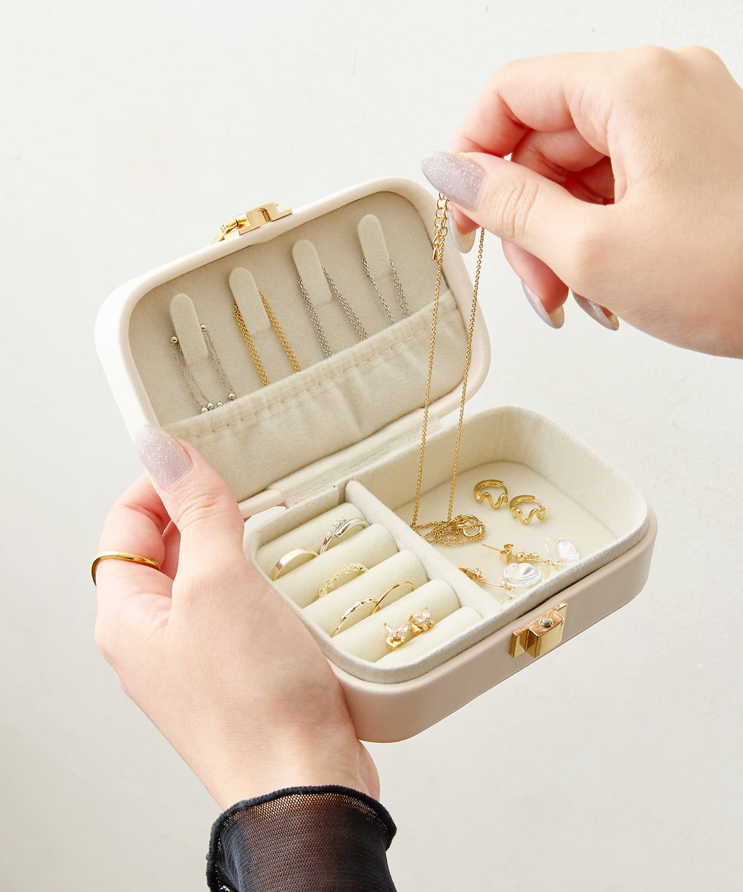 指輪やイヤリング等の区分けが出来る上、コンパクト差がちょうど良い。旅行中もオシャレを楽しまめそうです。