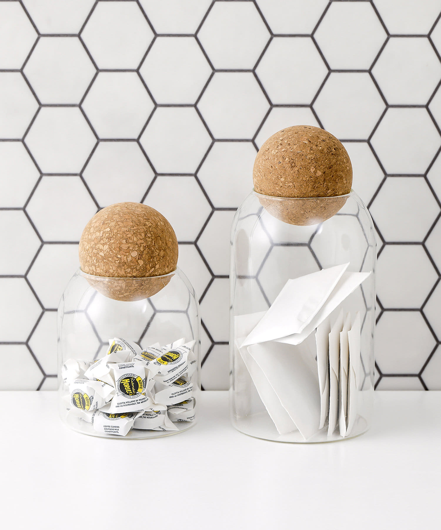 ●耐久性が高く、中身が見やすいクリアガラス製のキャニスター。