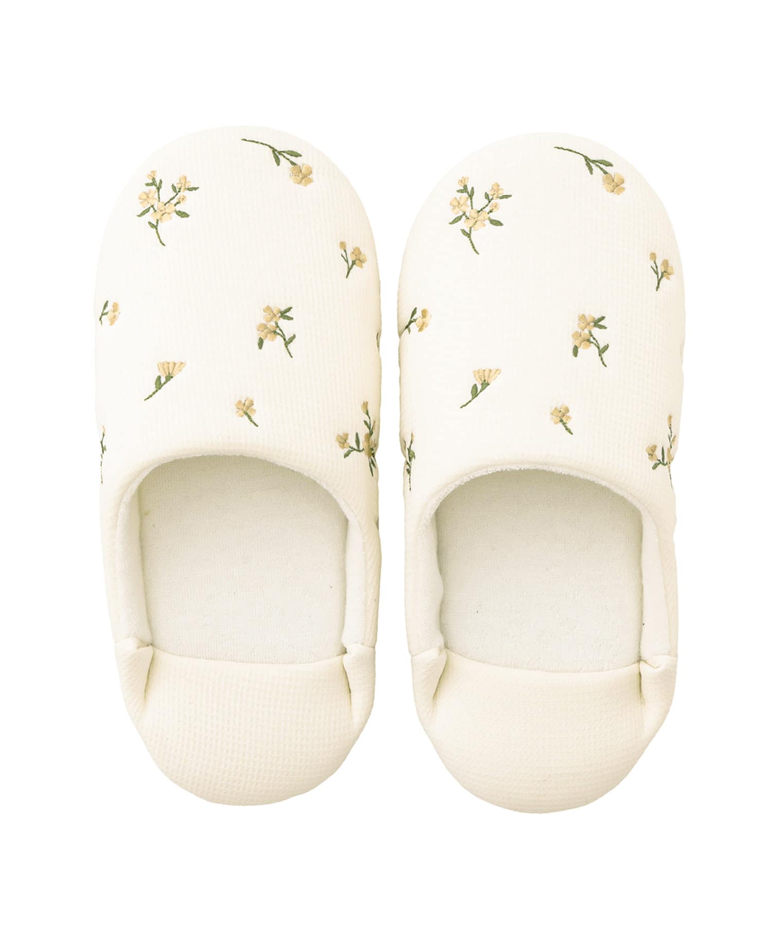 ●お花柄の刺繡がワンポイントのバブーシュ。