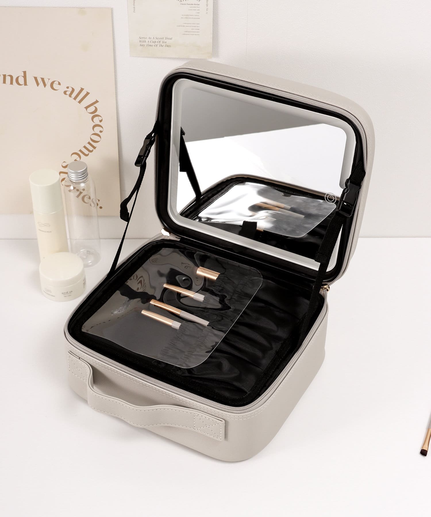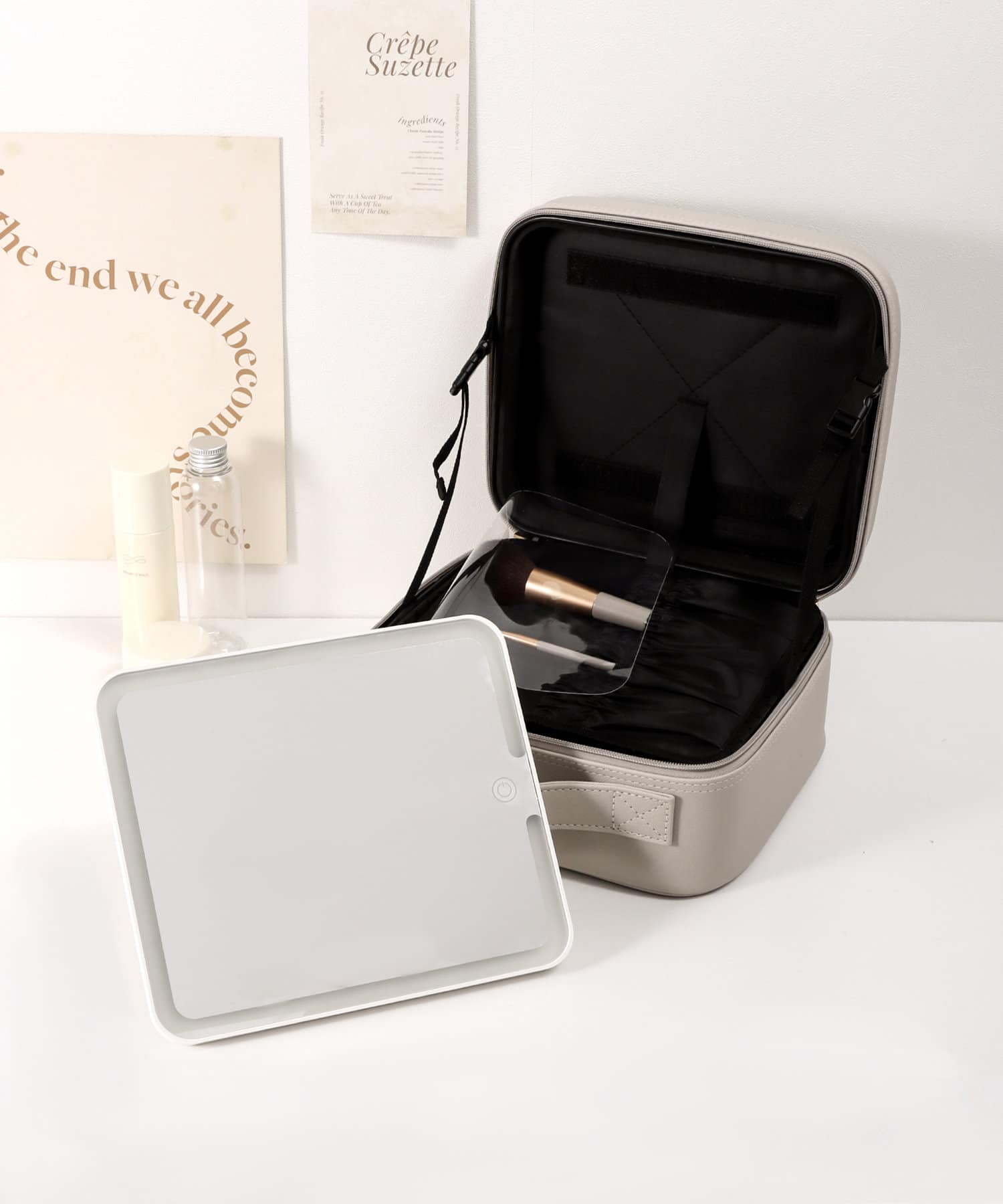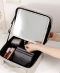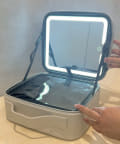 ●ライト付きミラーで、どこでも本格的なメイクが可能に!