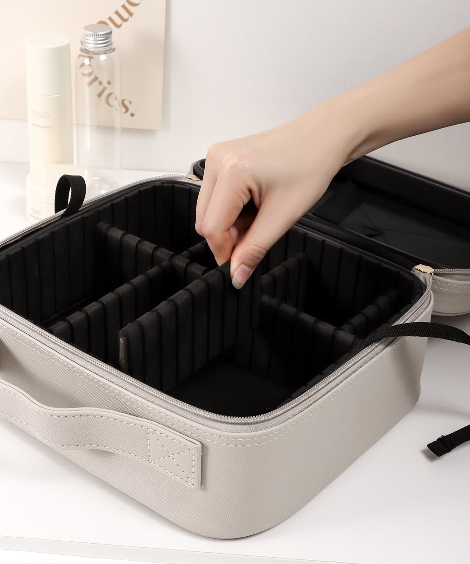 ●自由に動かせる仕切り付きなのでごちゃつくことなくコスメを収納できます。