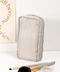 ●正面はブラシ用ポーチになっていてブラシやマスカラ、アイライナーなどを固定できるゴムバンドが付いています。
