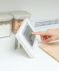 画面が柔らかいフィルムでぴたっと覆っているから操作もしやすいし、音も中に篭らずクリアに聞こえるし、角度も自由に変えれて、マグネットで簡単に壁につきます。