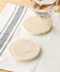 ●丸太の輪切りをそのままコースターにしたようなぬくもり溢れるデザイン。