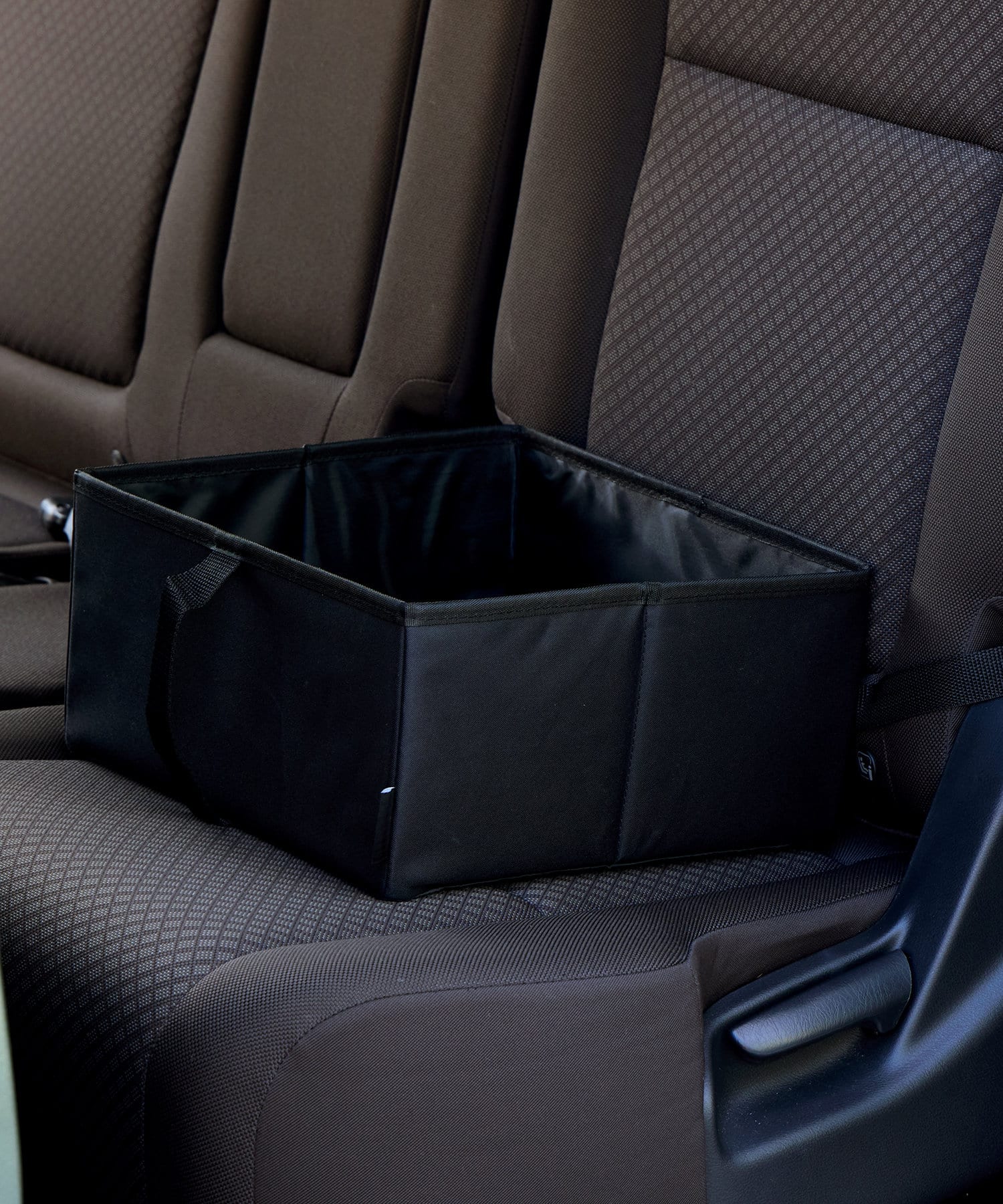 ●車の座席に置いた荷物の荷崩れ防止に役立つボックス。