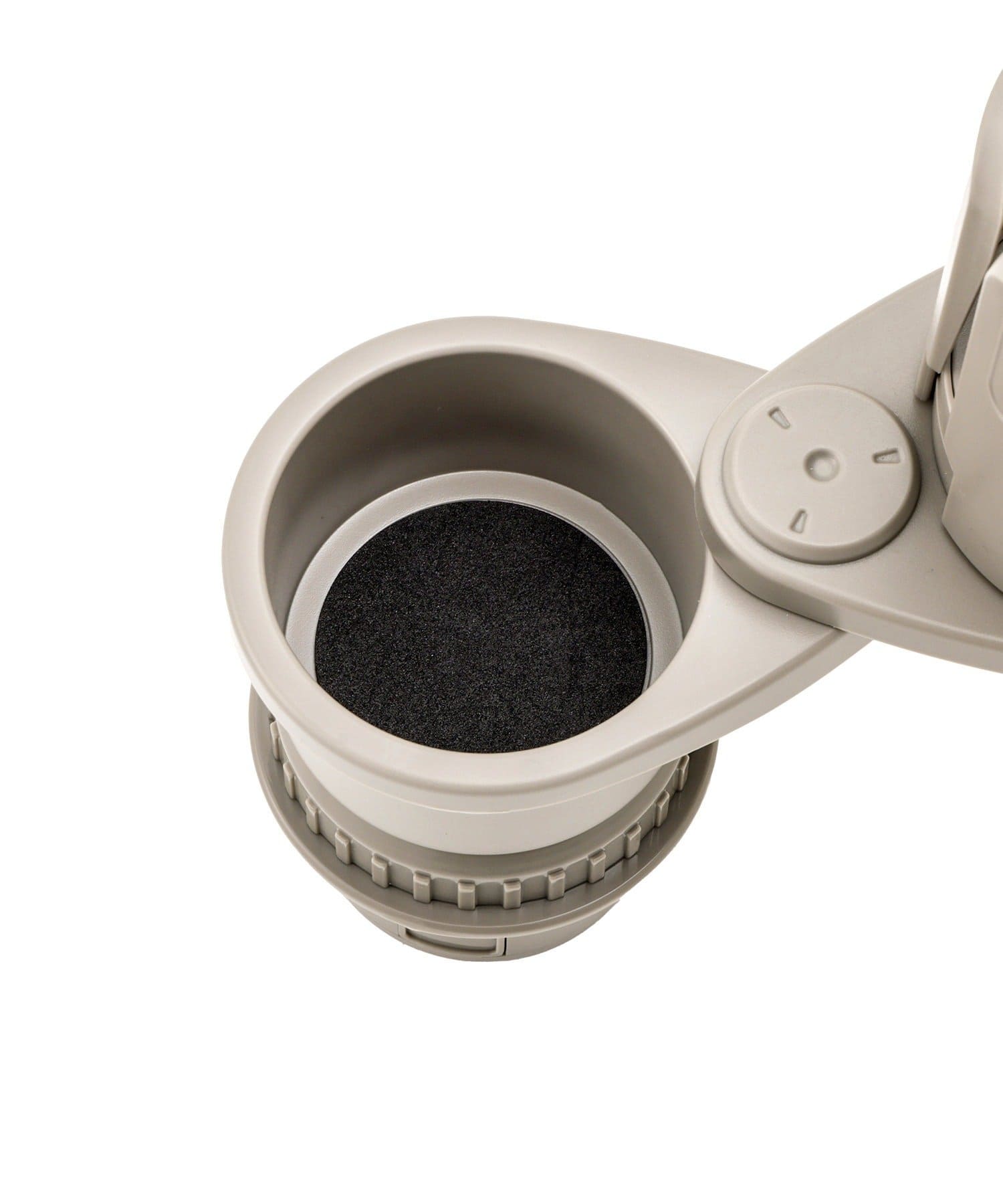 ●土台部分を純正カップホルダーにはめ込み、調整ネジを回してください。