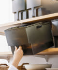 ●本体下部に取っ手がついているので、吊戸棚のような高い位置からでも簡単に取り出せます。