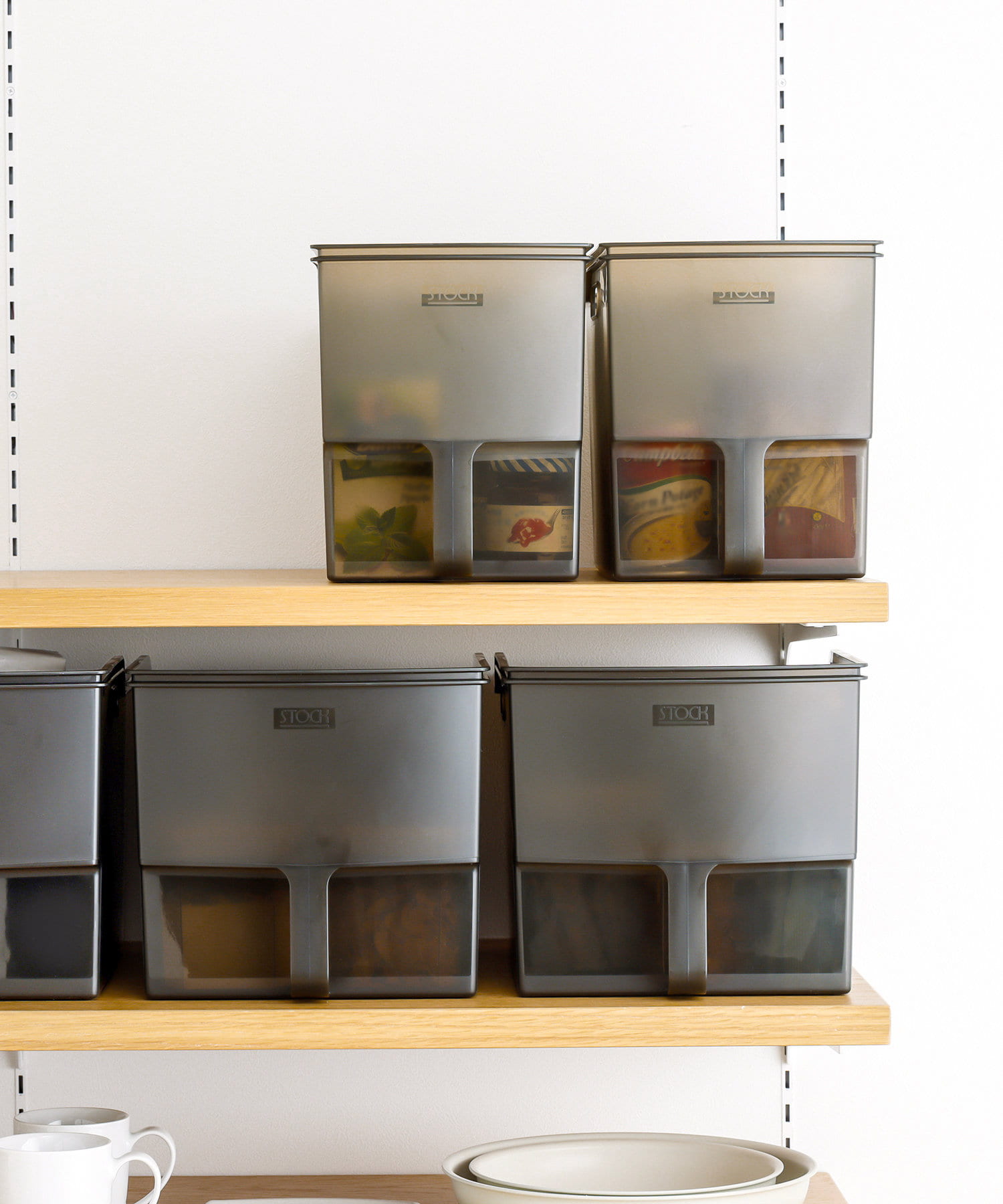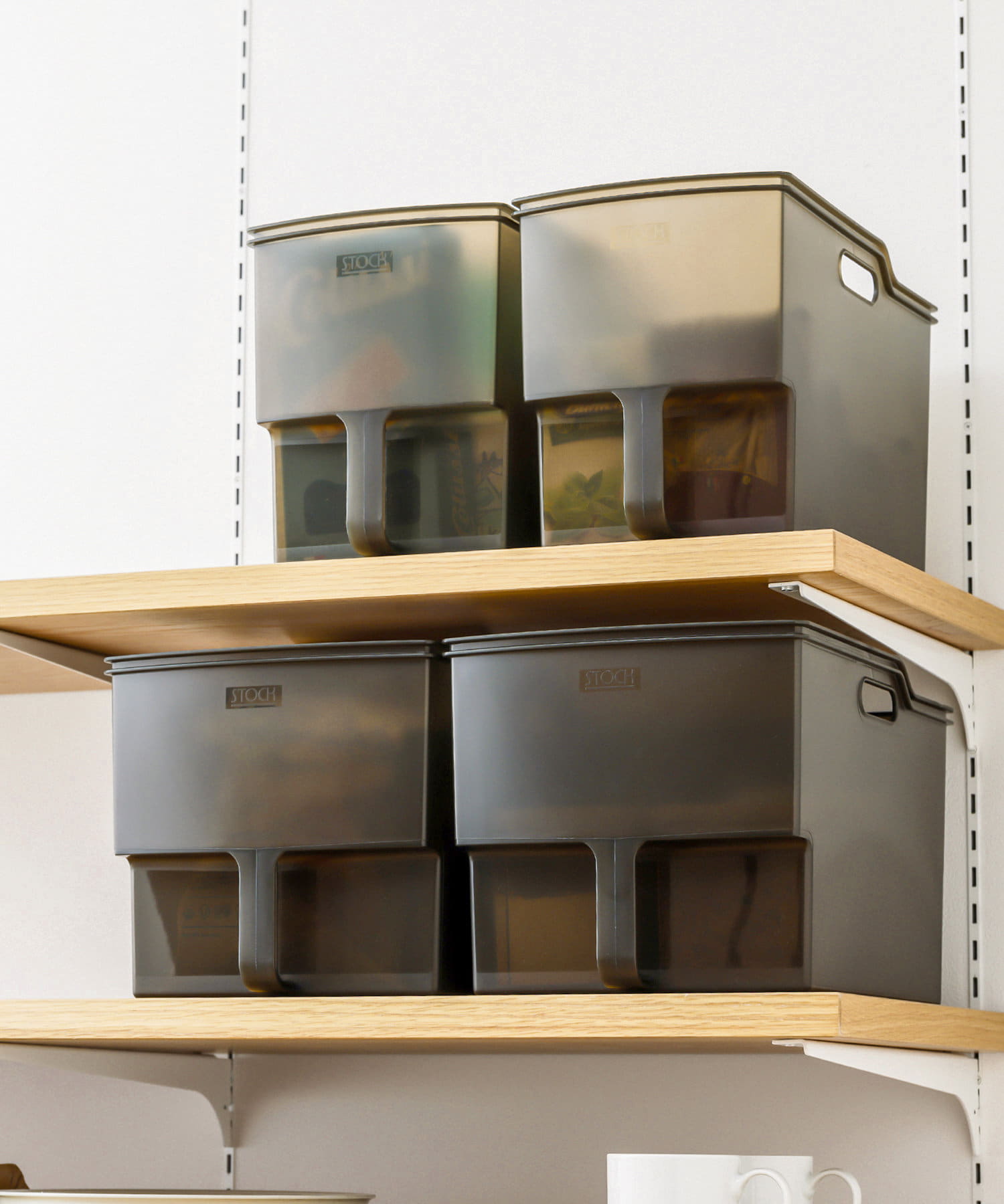 購入場所:店舗食器棚の上に置いているストックのお菓子やジップロックがごちゃごちゃしているのが気になって、何とかしたかったので購入。
