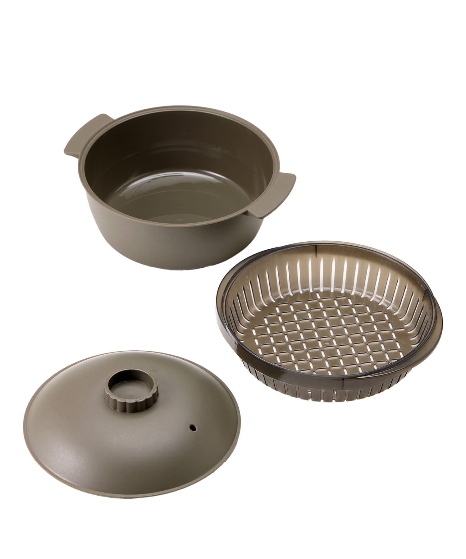 ●加熱調理後には本体・ザル・フタ共に大変熱くなっています。また、フタの内側に付着した湯滴が垂れ落ちることもあります。特にレンジからの取り出しの際には、やけどに十分ご注意ください。