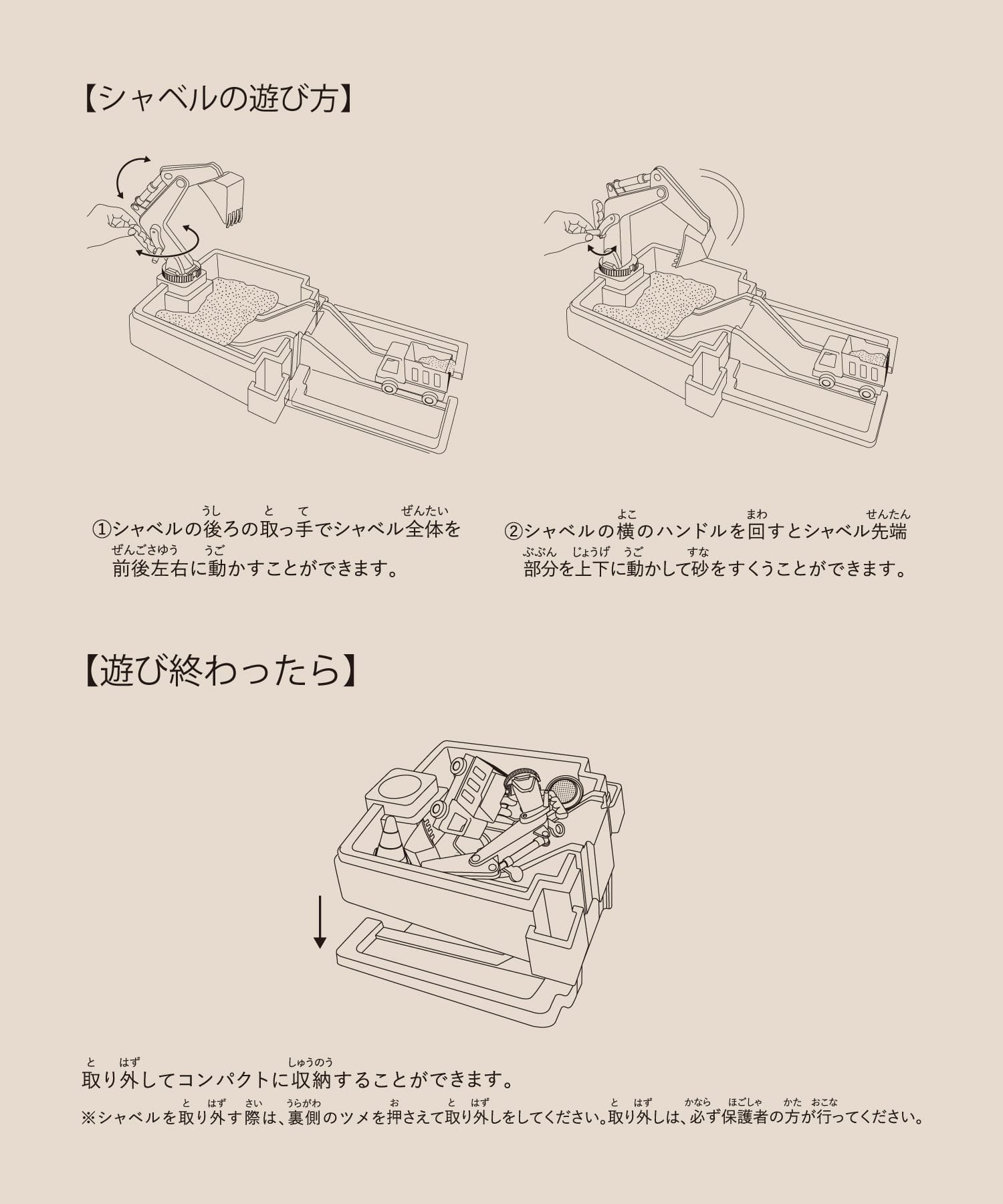 ●シャベルは角度や向きを変えられて、砂をすくうことができます。