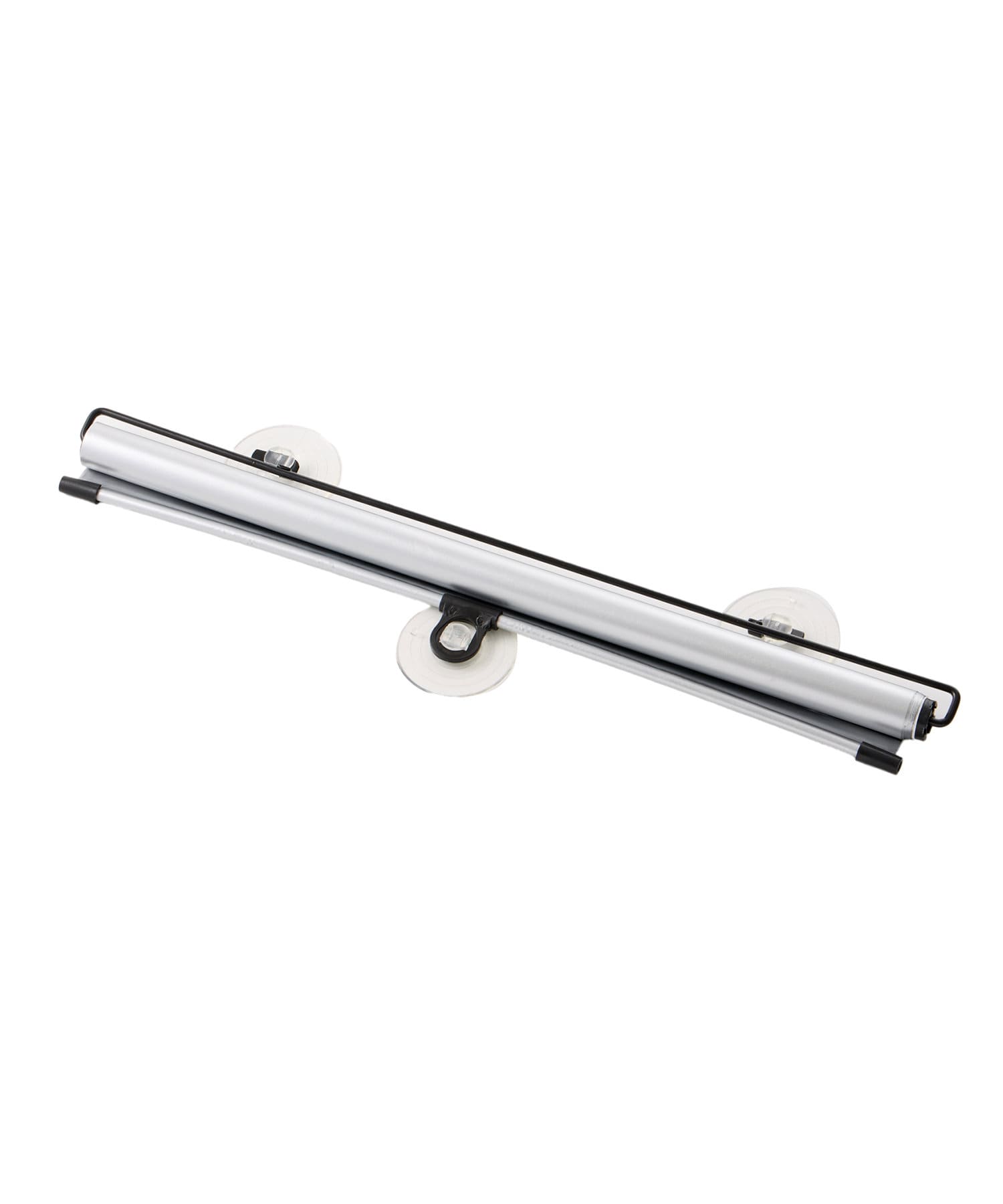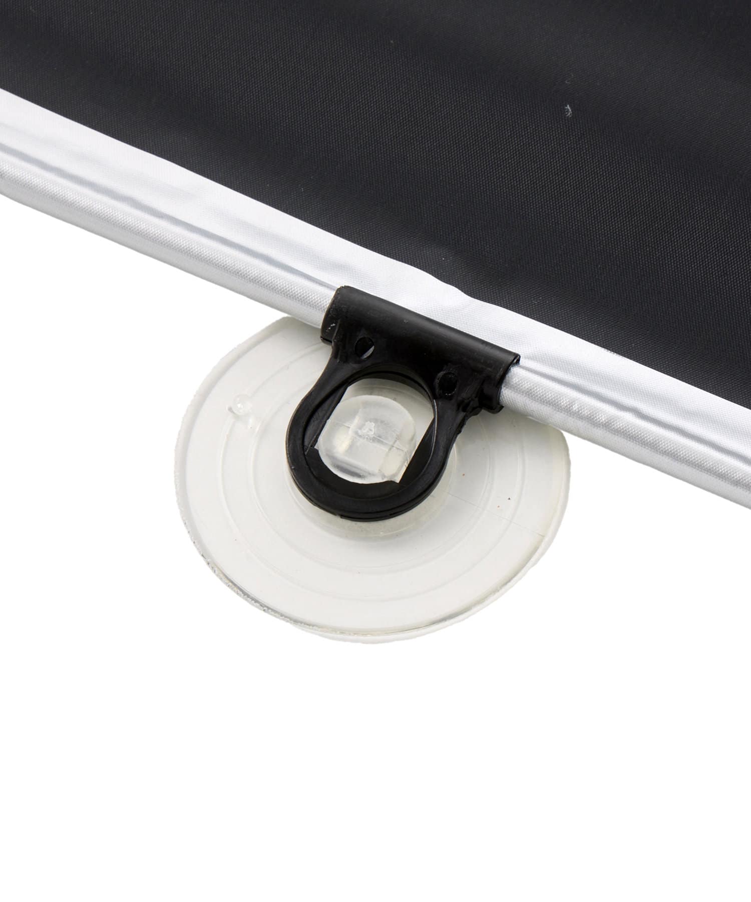 2.丸いフックに吸盤を引っ掛け、サンシェードを引き出し、フロントガラスに取り付ける。