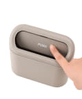 ●押すと自動的に跳ね返るプッシュ式のフタで、中身が見えないのもうれしいポイント。