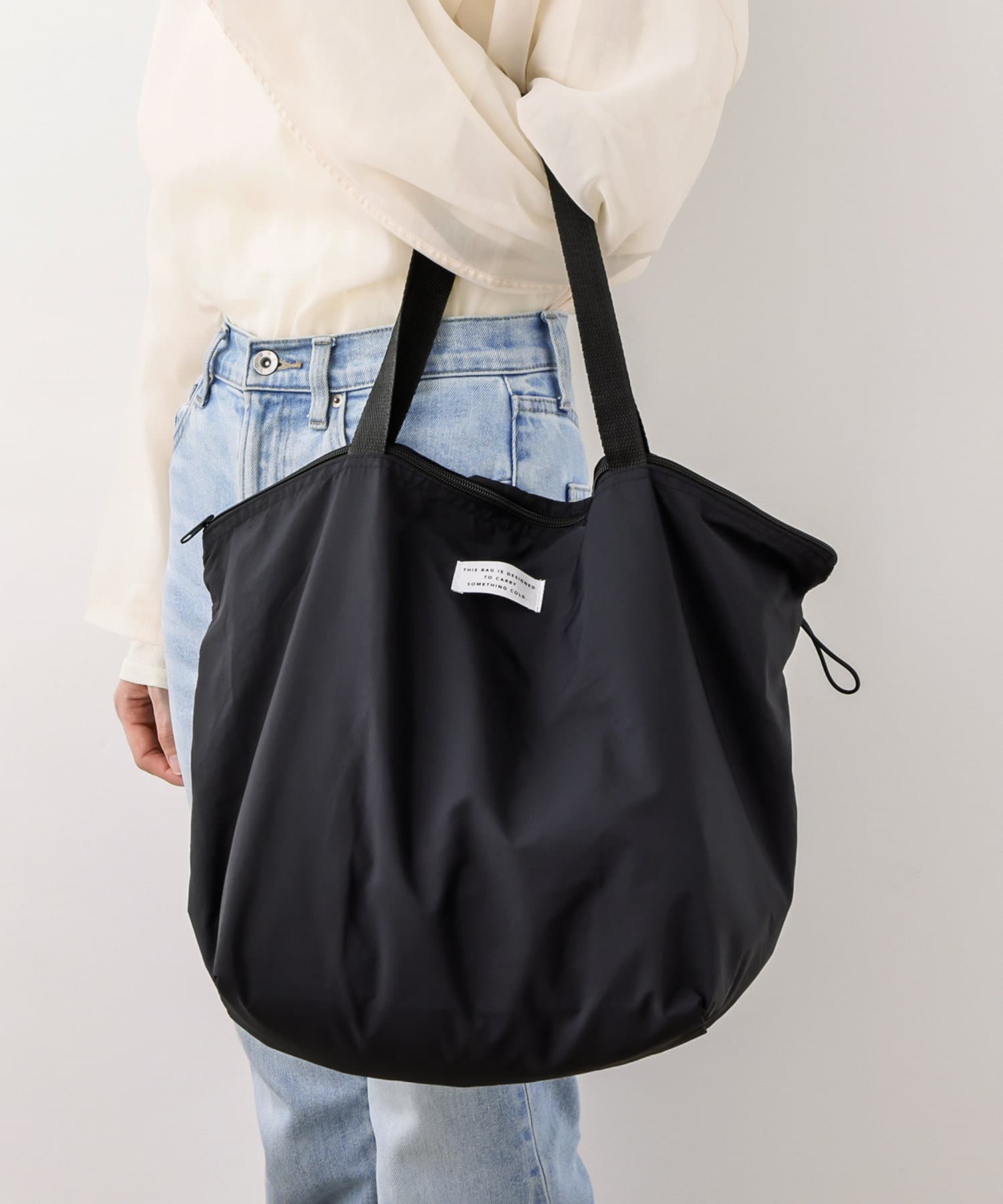 広げるとサイズが大きく、肩掛け出来るので沢山買い物した時でもしっかり収納出来るのが良いです。