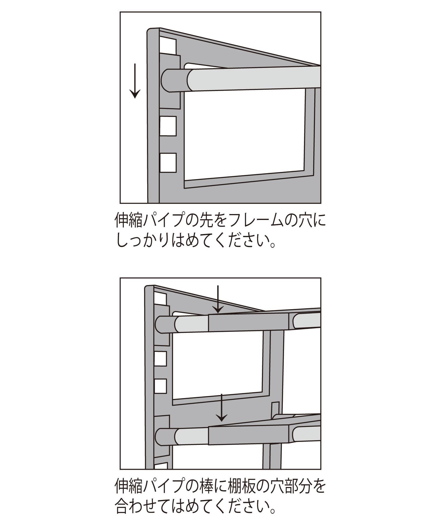 ●棚の伸縮幅は42~72cmです。それ以上に広げないでください。