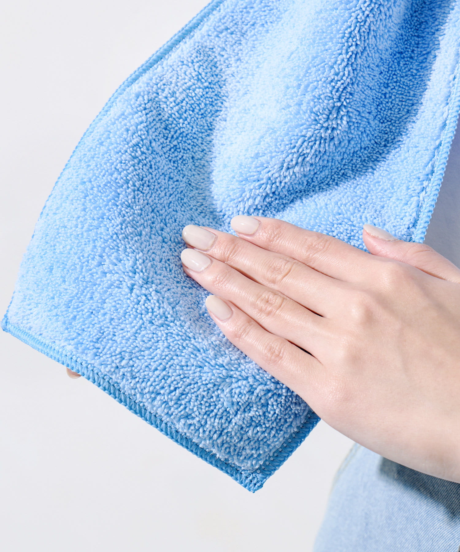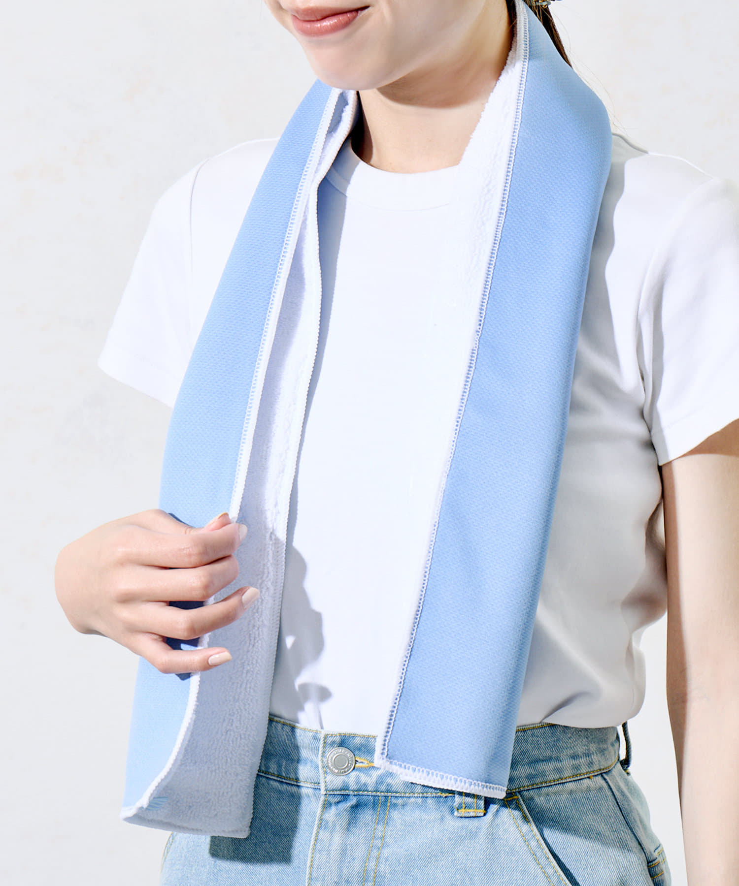 ●接触冷感生地とパイル生地を使用した両面タオル。