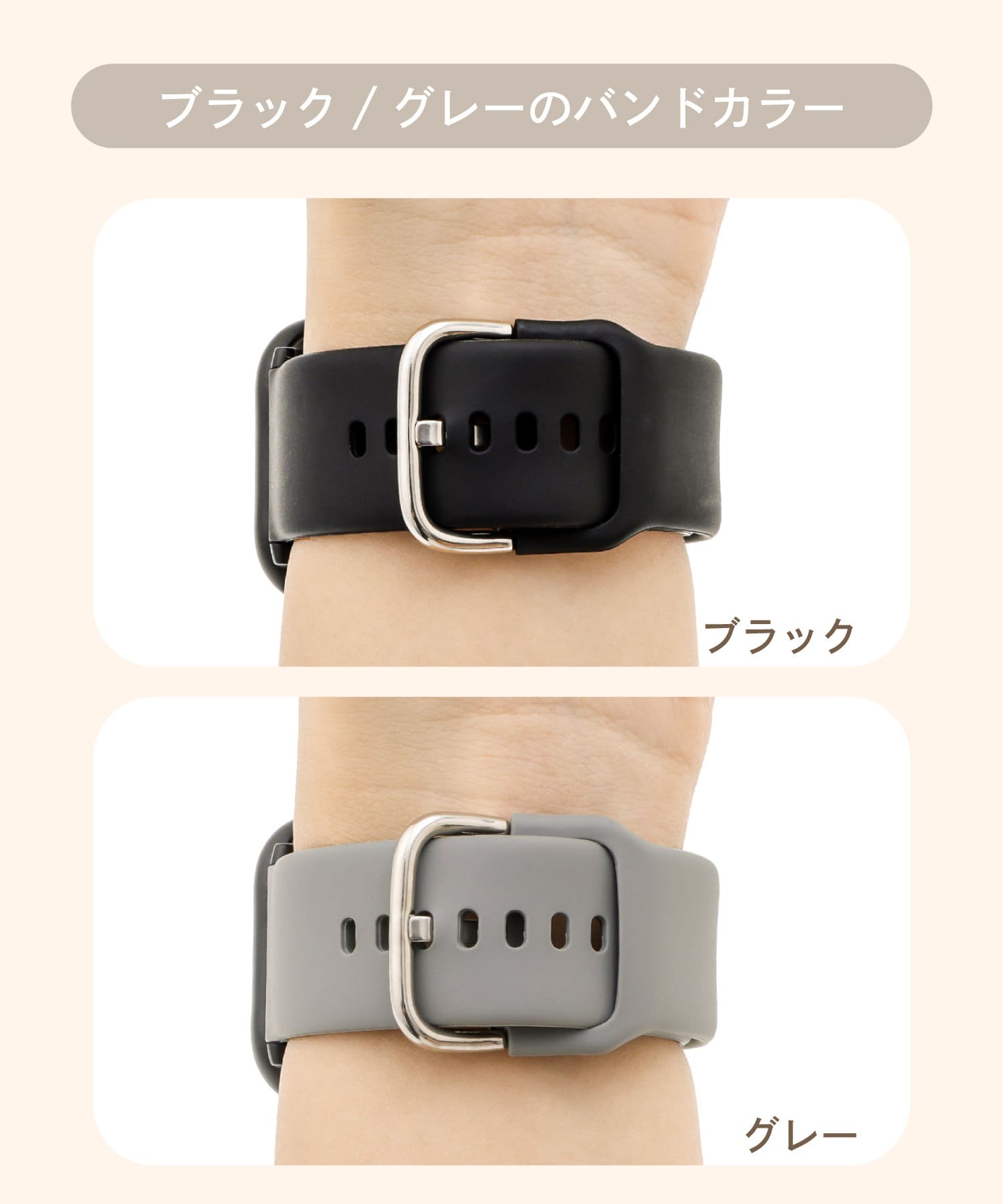 ●ベルトを別売りのファイクレザーバンド無地や、フェイクレザーバンドステッチに付け替えてお好みのデザインを楽しめます。