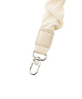 金具もしっかりしていてシュシュ風のストラップが可愛いです。ストラップは平ゴムになっていました。