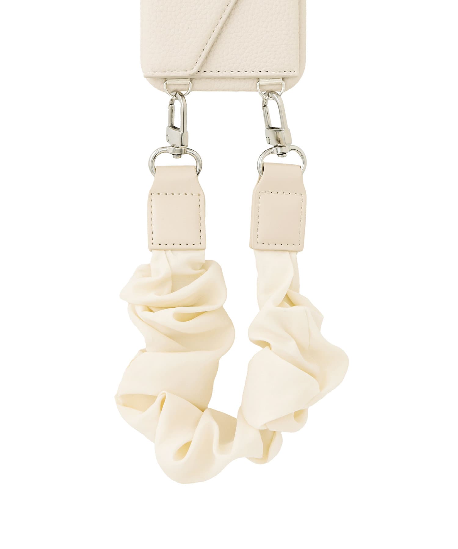●フリルであしらわれたデザインが可愛らしいハンドストラップ。