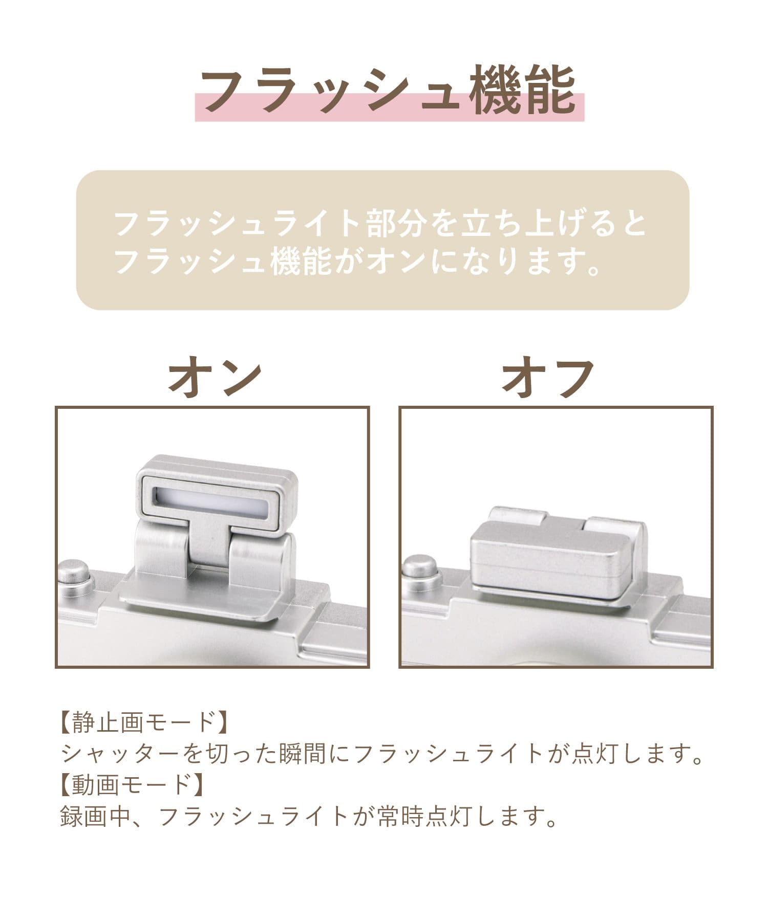 ●写真撮影時の画質設定やタイマー撮影、動画撮影時による解像度の設定、フラッシュ機能など、本格的な機能が満載!