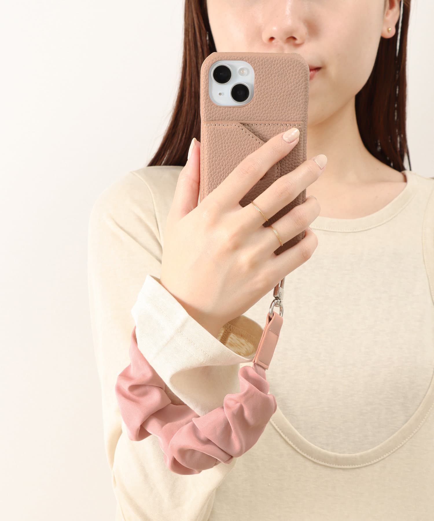 ●お気に入りのスマホショルダーを付けられる金具付き。