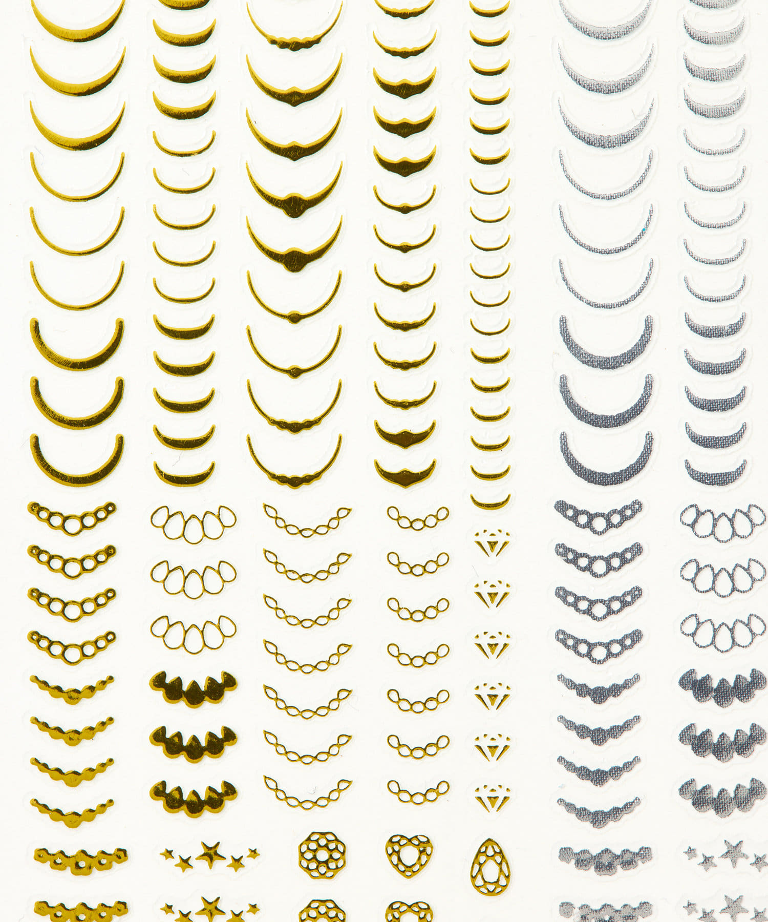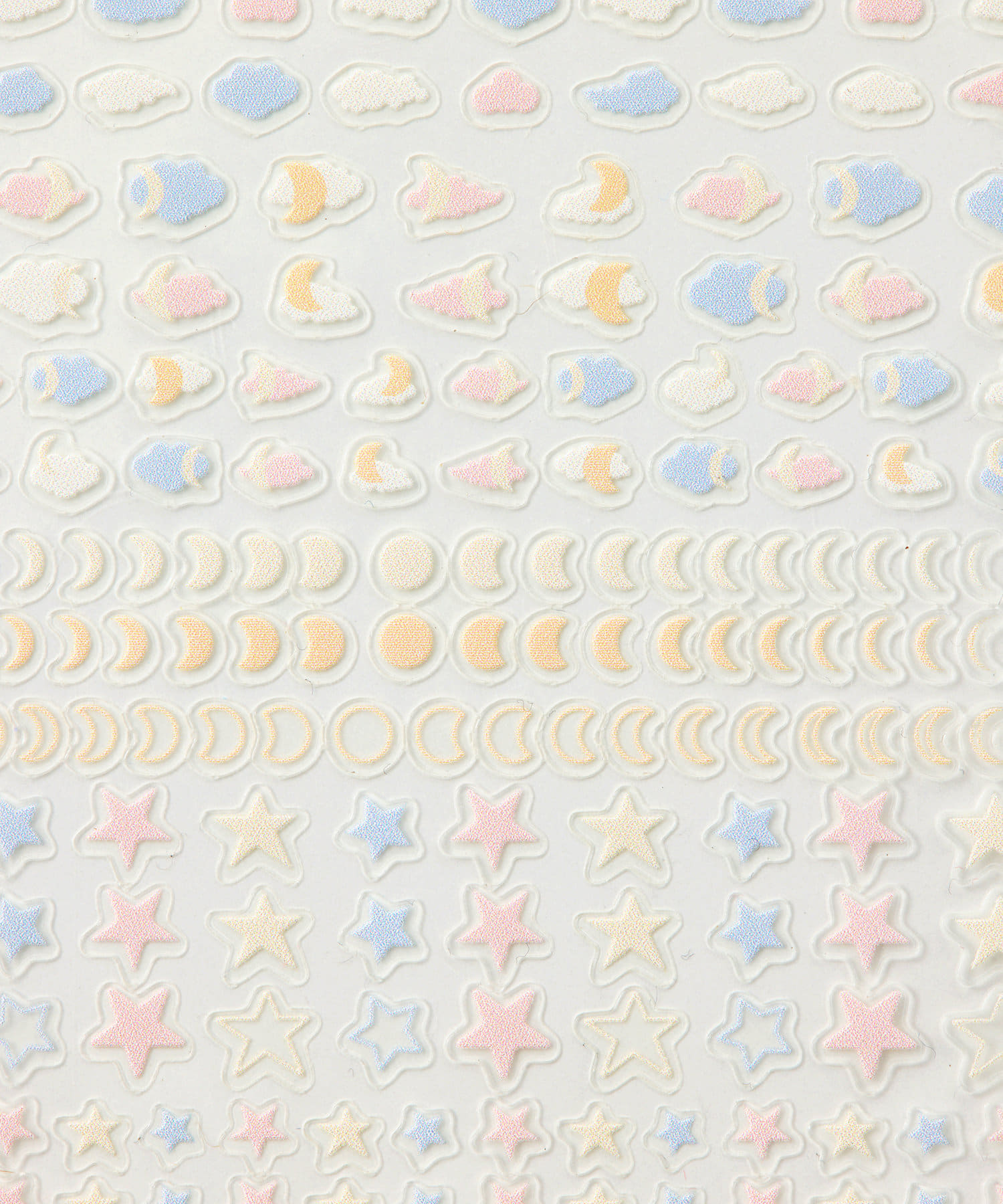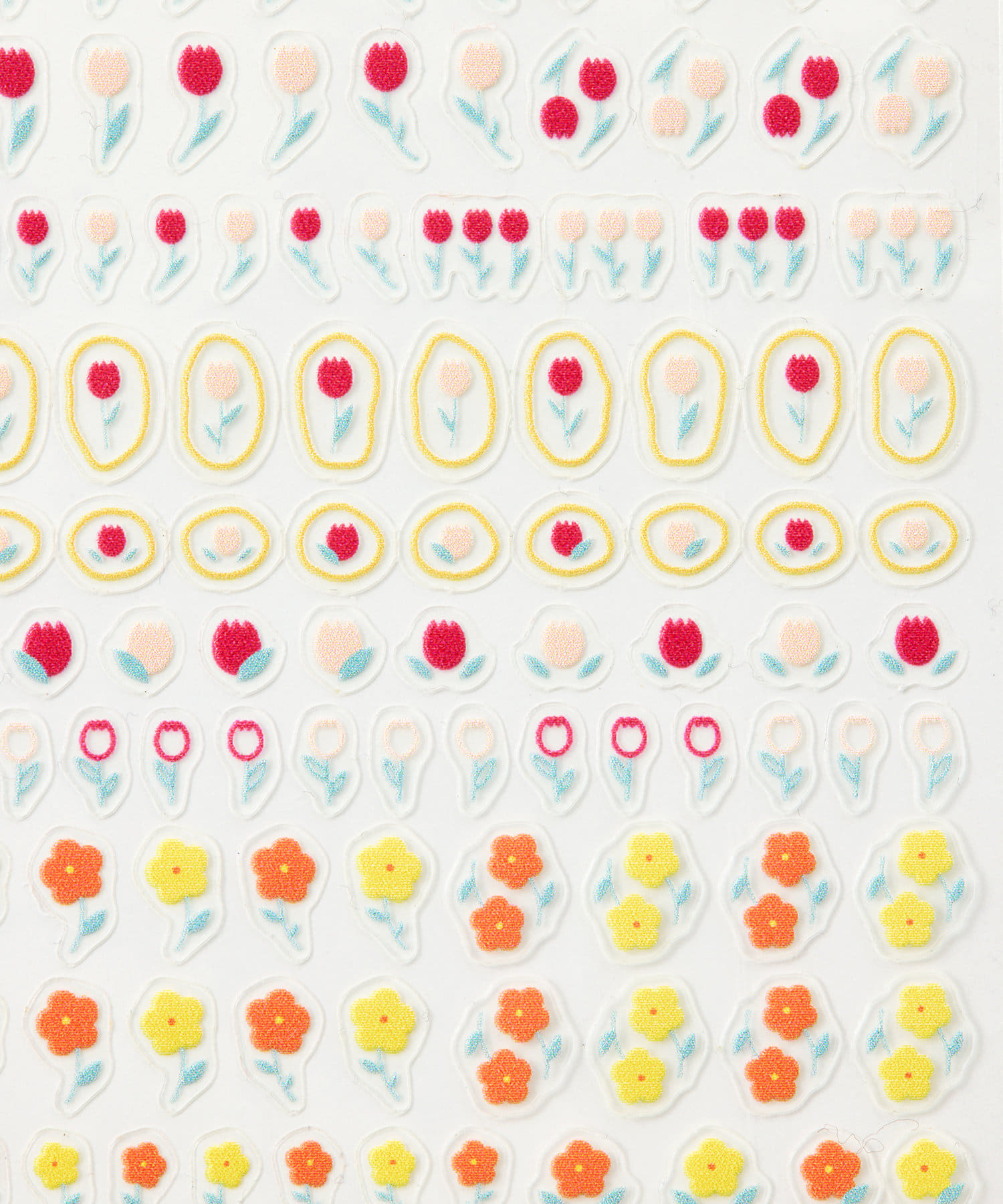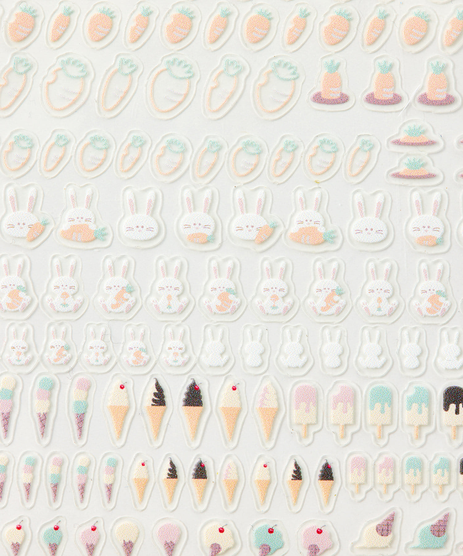 ●シールを台紙から1枚ずつはがして爪に貼ってください。ネイルカラーの上に貼る場合は、ネイルが乾いてから貼ってください。