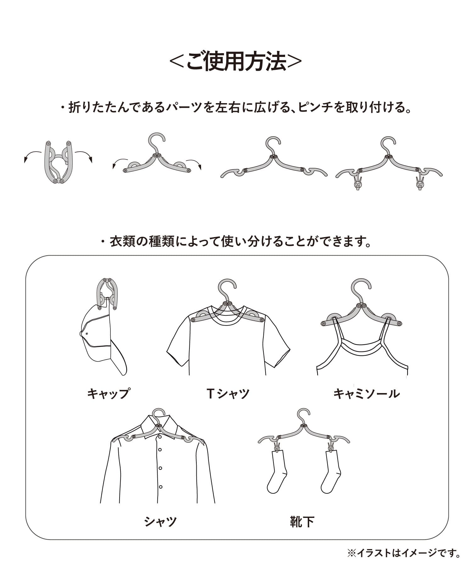 ●靴下や下着、キャップを干す際に便利なピンチ付きです。