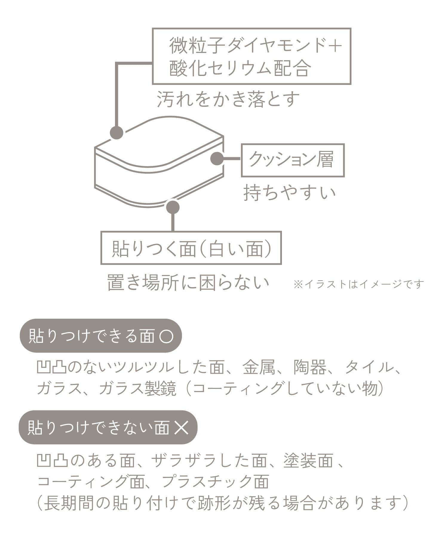 ●研磨面に「人工ダイヤモンド」を使用しており、洗剤を使わず水だけで汚れを落とせるクリーナー!