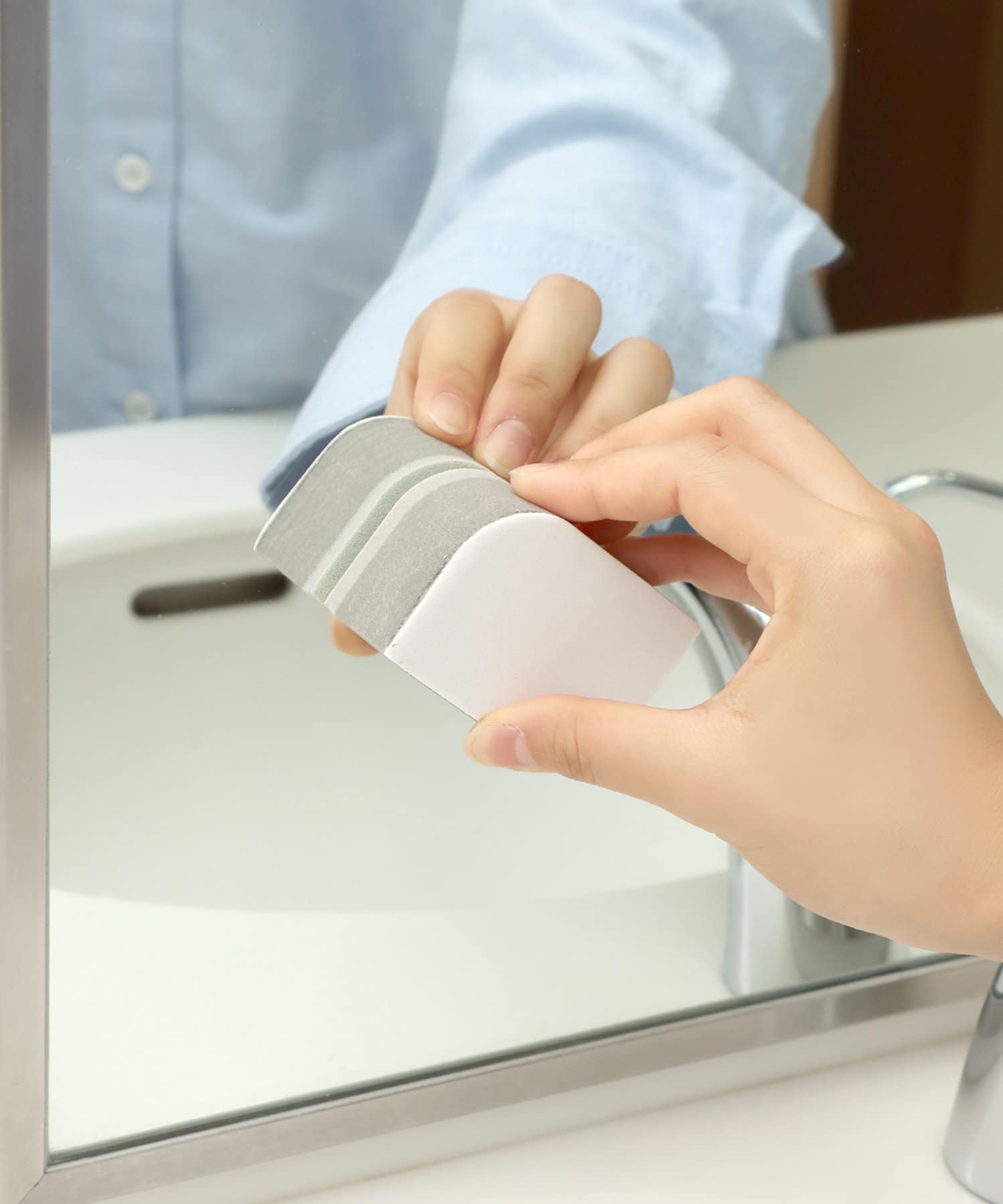 《水だけで落とせる!》浮かせて収納できるダイヤモンド鏡磨き2個セット